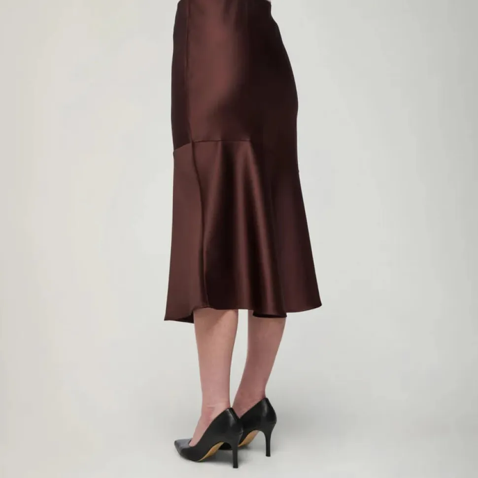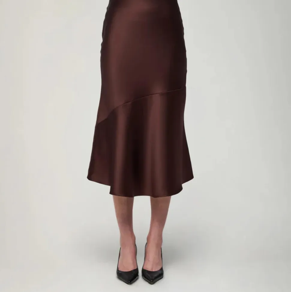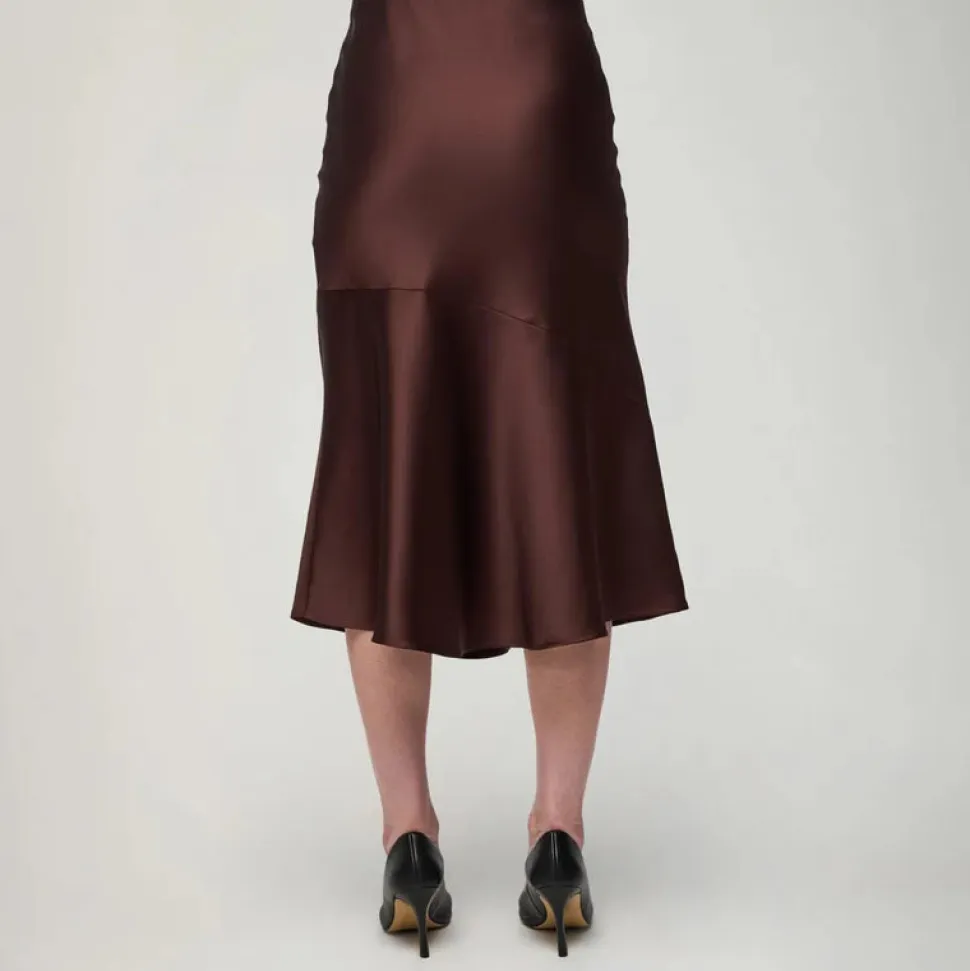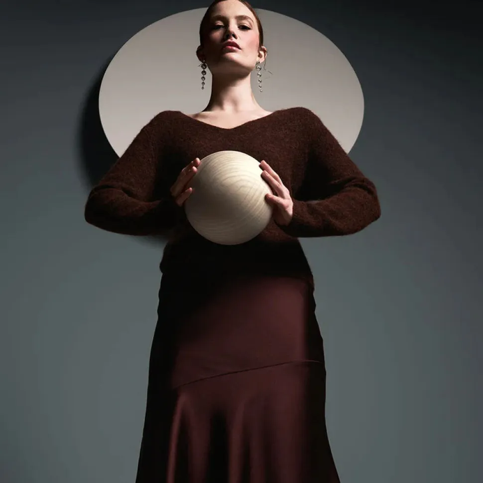 Naisellisen ajattomassa Kelly-satiinihameessa on kevyesti vartaloa myötäilevä istuvuus sekä leveä vyötärönauha, joka joustaa mukavasti. Aarikan pyöreä muotokieli toistuu sen kellotetussa helmassa kauniisti. Hulmuavahelmaisen hameen materiaali on laadukasta, paksumpaa satiinia, jossa on kaunis kiilto.