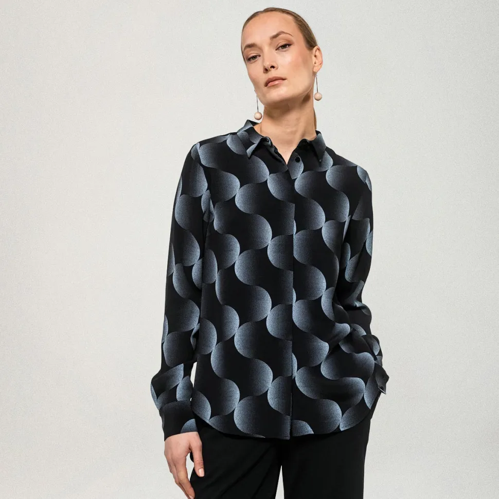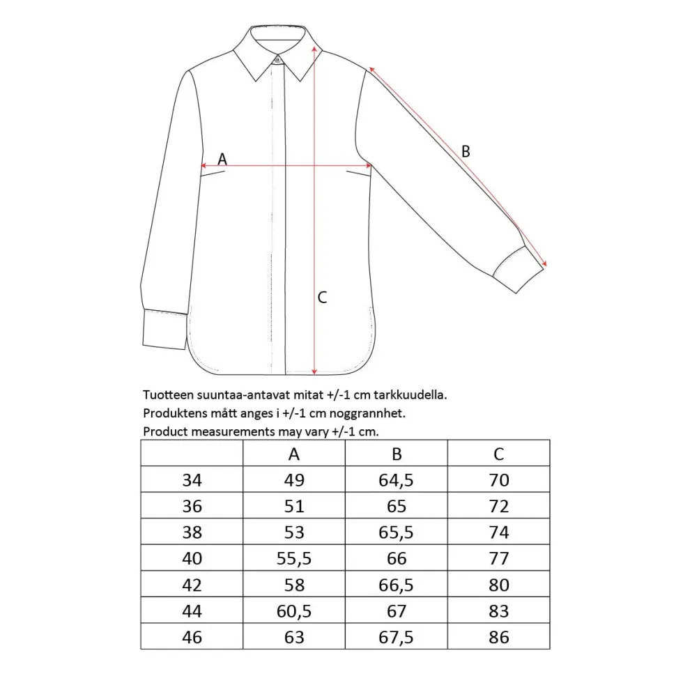 Nebula-kuosisessa Tiila-paidassa on klassiset kaulukset, leveät mansetit hihansuissa ja edessä piilotettu nappikiinnitys. Kauluspaidan materiaali on miellyttävää viskoosia. Suunniteltu Suomessa.