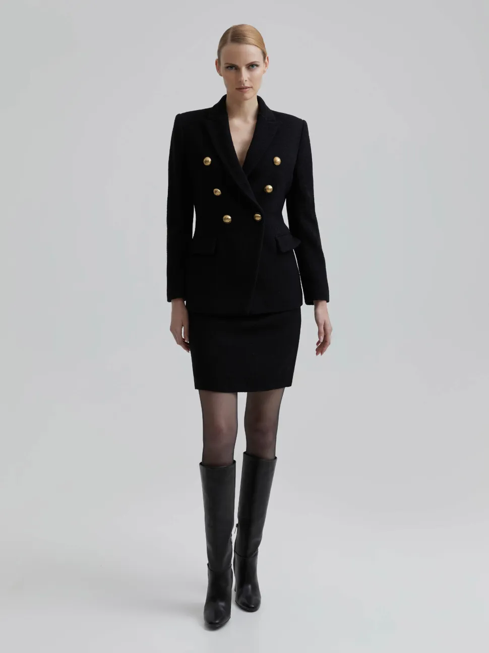 Tyylikäs ja klassinen bleiseri kullanvärisillä napeilla. Upea naisellinen istuvuus ja monikäyttöisesti yhdisteltävissä niin hameiden kuin housujen kanssa. Luottovaate moneen tilanteeseen.