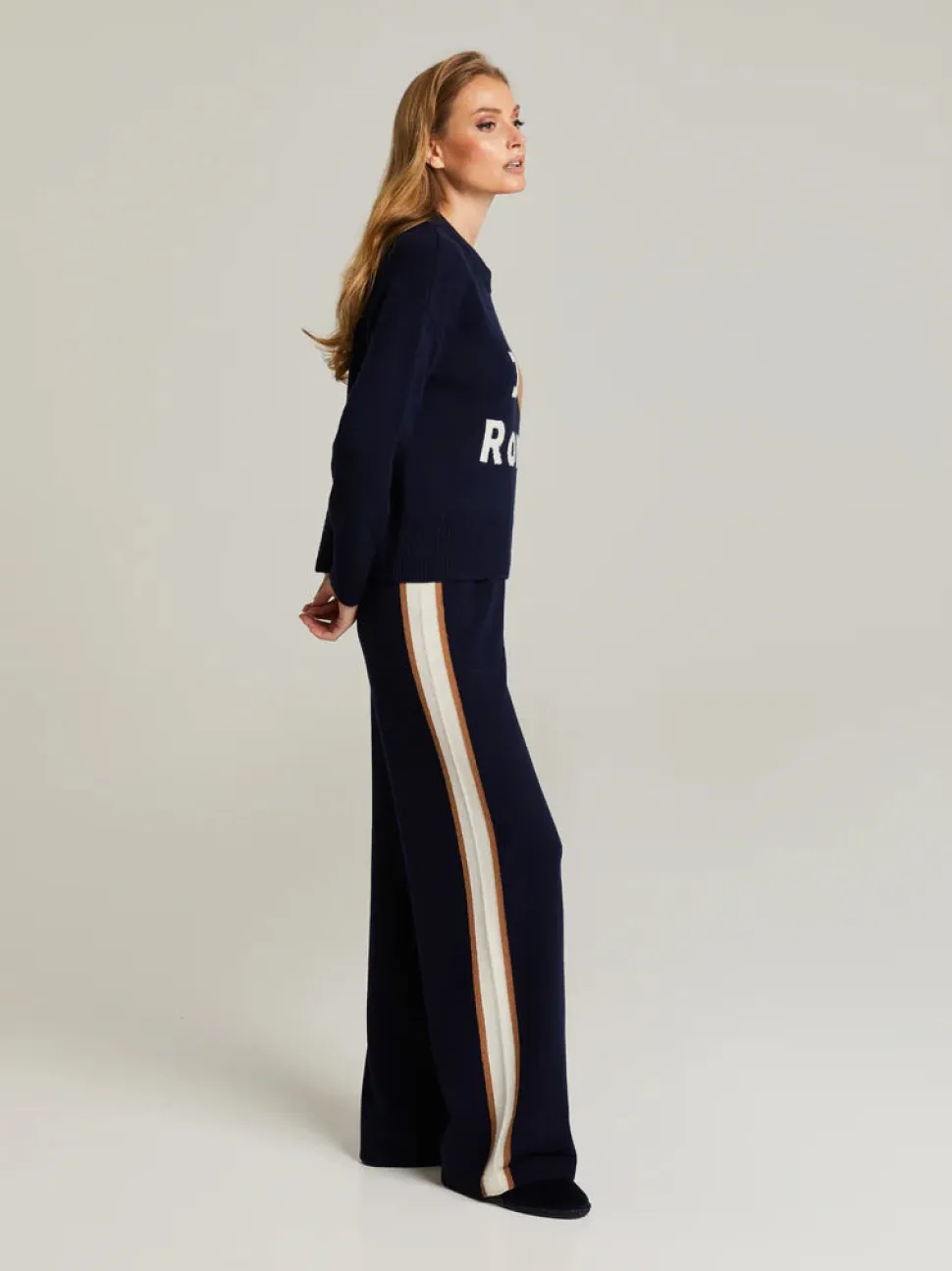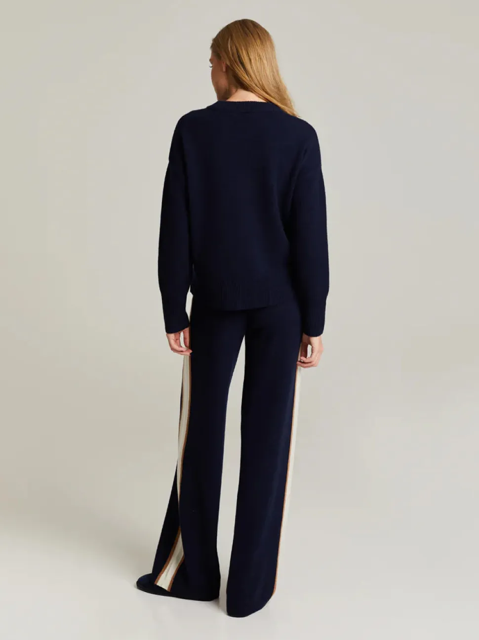 Rennon mallinen neulepusero merino-kashmirsekoitteesta (90% Merino, 10% Cashmere). Pyöreä pääntie ja täyspitkät hihat. Laskettu olka. Takaa hieman pidempi kuin edestä. Hihansuut, helma ja kaulus joustinneulosta.