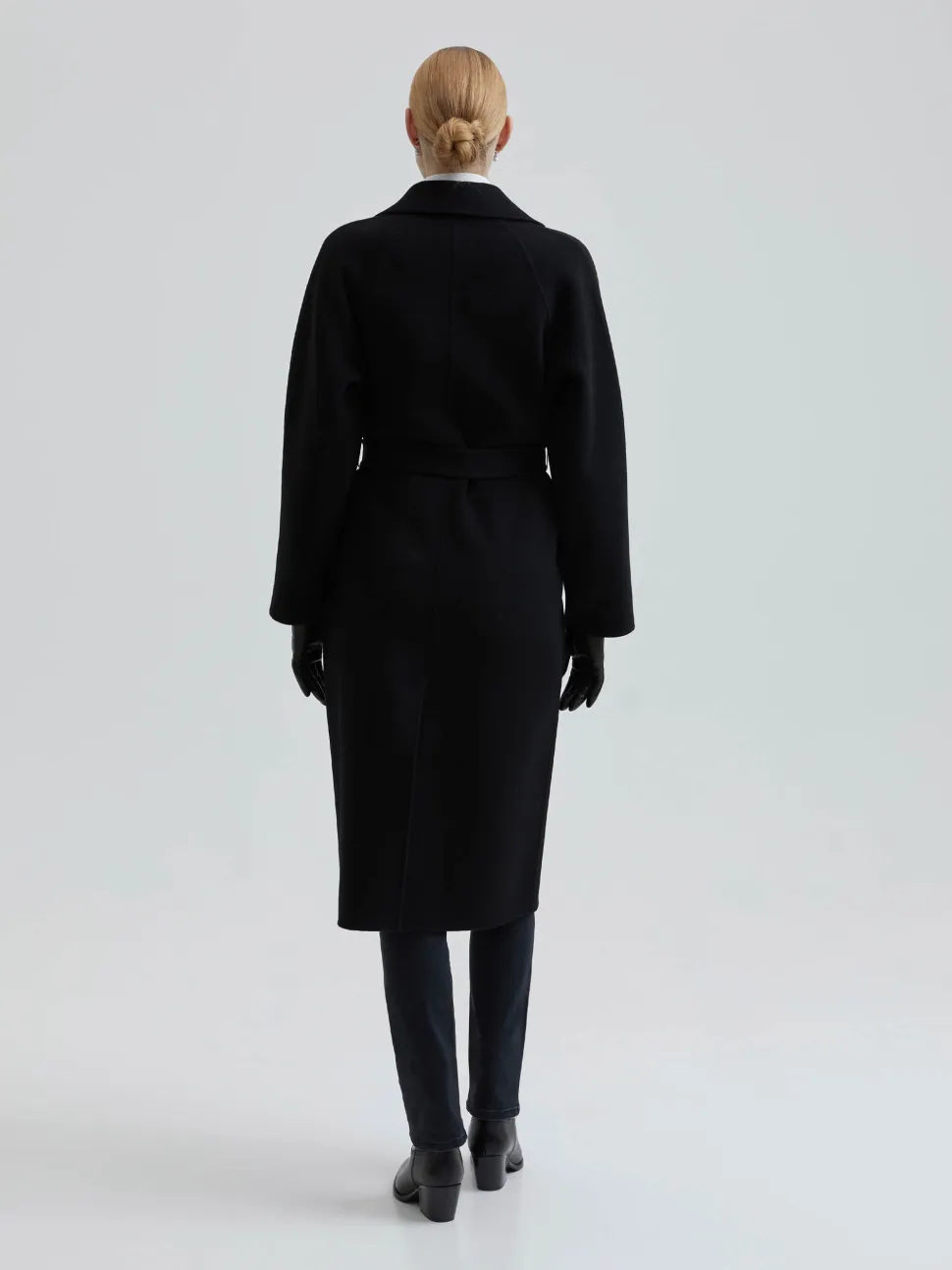 Tyylikäs naisten villakangastakki, käännekaulus ja napitus. Käytännöllisyyttä lisäämään isot sivutaskut. Yksivärinen klassinen design, mukana vyö korostaen vyötäröä. Huolitellut yksityiskohdat nappilistassa ja koristenapeissa.