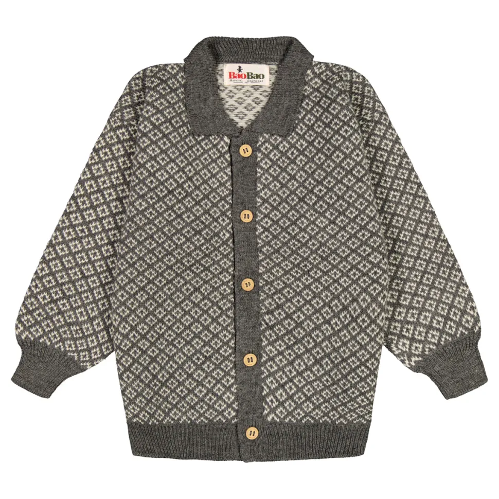 Lasten merinovillainen neuletakki, jossa perinteikäs ruutukuviointi. Pääntiellä kääntökaulukset ja edessä napitus puisilla napeilla. Hihansuissa ja helmassa joustinneulosta. Materiaali 100% laadukasta merinovillaa. Neuletakki valmistettu Virossa.