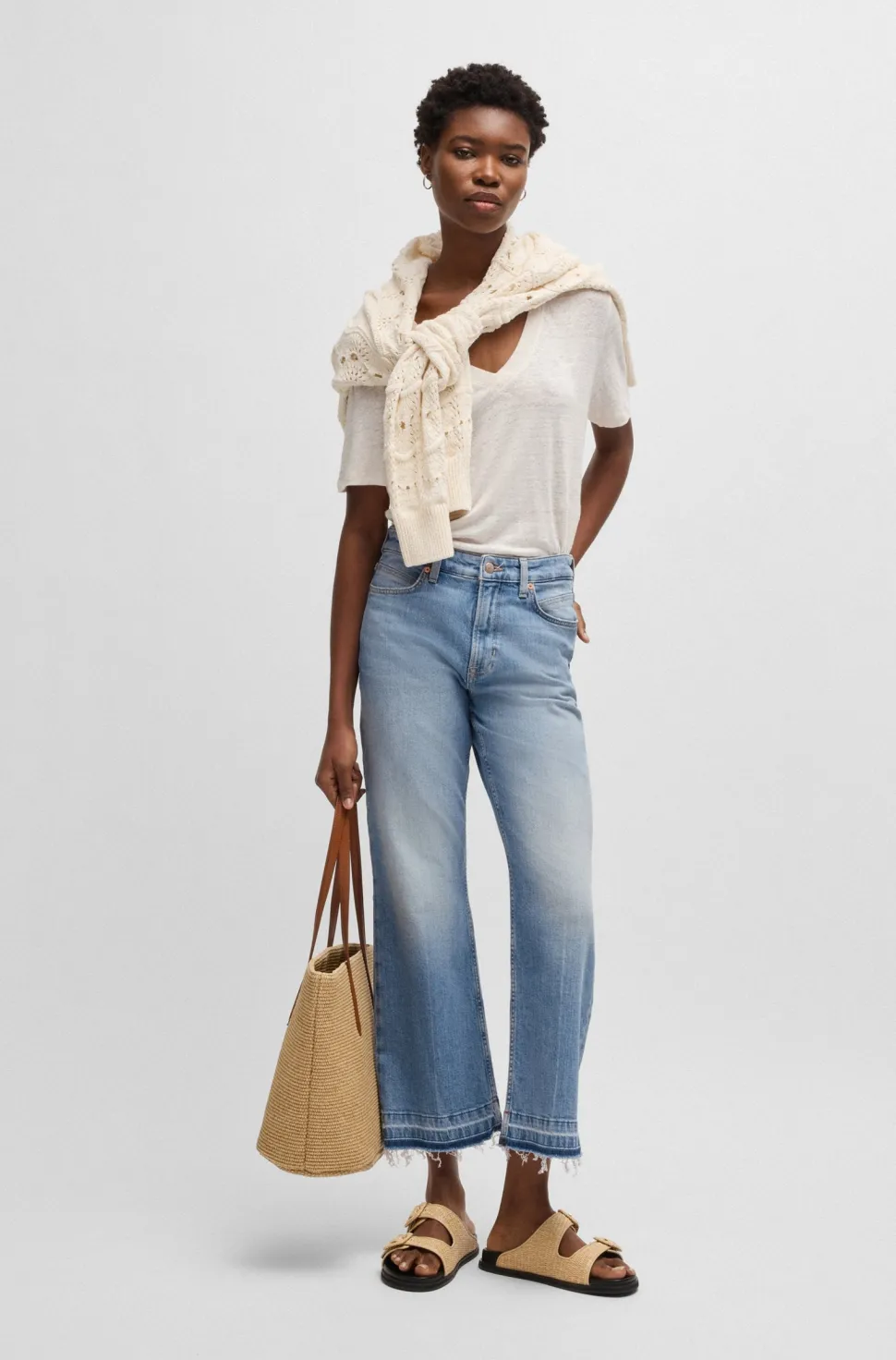 Malli käyttää kokoa 27 ja on 181 cm pitkä, rinnanympärys 80 cm, vyötärönympärys 60 cm ja lantio 88 cm.