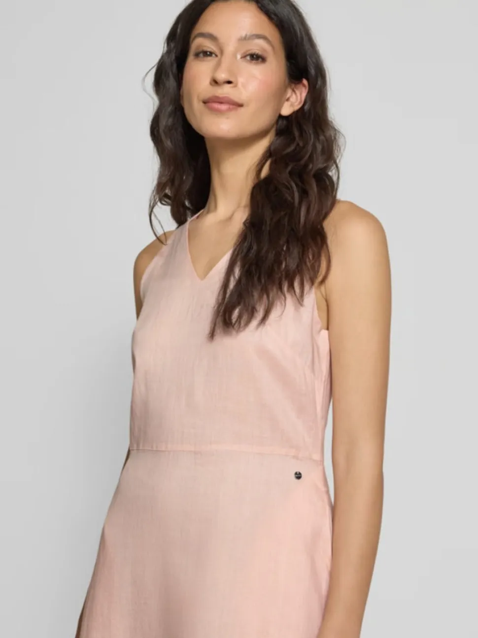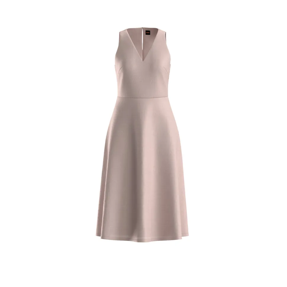 BOSS Orange midimekko halaa hellästi siluettia hieman räätälöidyllä leikkauksellaan. V-pääntie ja leveät olkaimet antavat mekolle tyylikkään ilmeen, kun taas laadukas materiaali lisää mukavuutta.