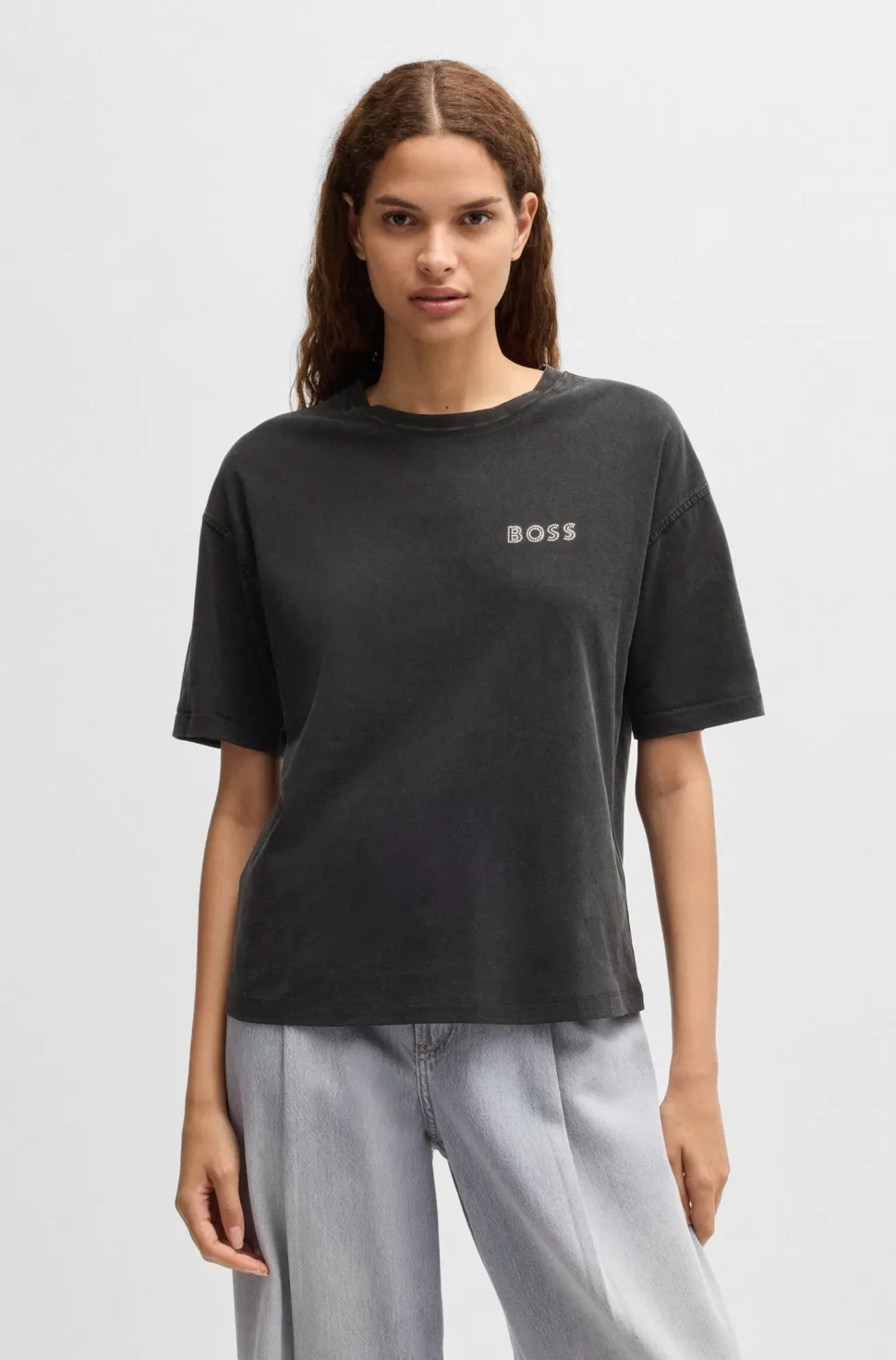 Rento istuvuus pehmeästä trikoosta, jossa on rullatut hihansuut.