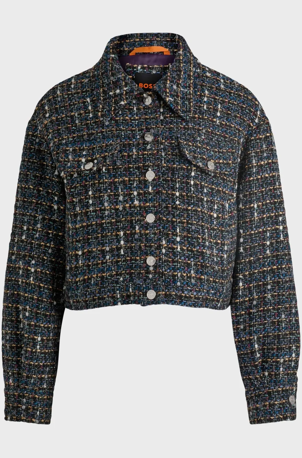 BOSS Orangen tweed-takki regular fit istuvuudella ja läpällisillä rintataskuilla. Täysin vuorattu. Napit hihansuissa.