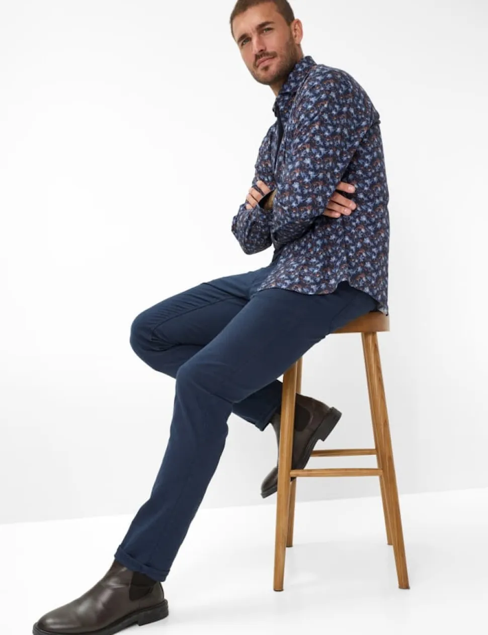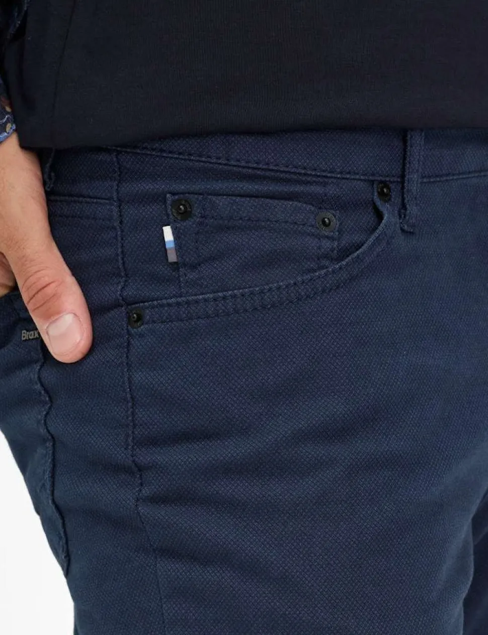 Teksturoitu pinta antaa housuille lisää syvyyttä ja dynaamista ilmettä. Samaan aikaan puuvillasekoite tekee vaikutuksen pehmeällä ja kestävällä mutta joustavalla tuntumalla. Mukavuutta lisää joustava Hi-FLEX-kangas, joka myötäilee vaivattomasti jokaista liikettä. Nämä miesten housut ovat todellinen välttämättömyys – modernit, tyylikkäät ja helposti yhdisteltävät.