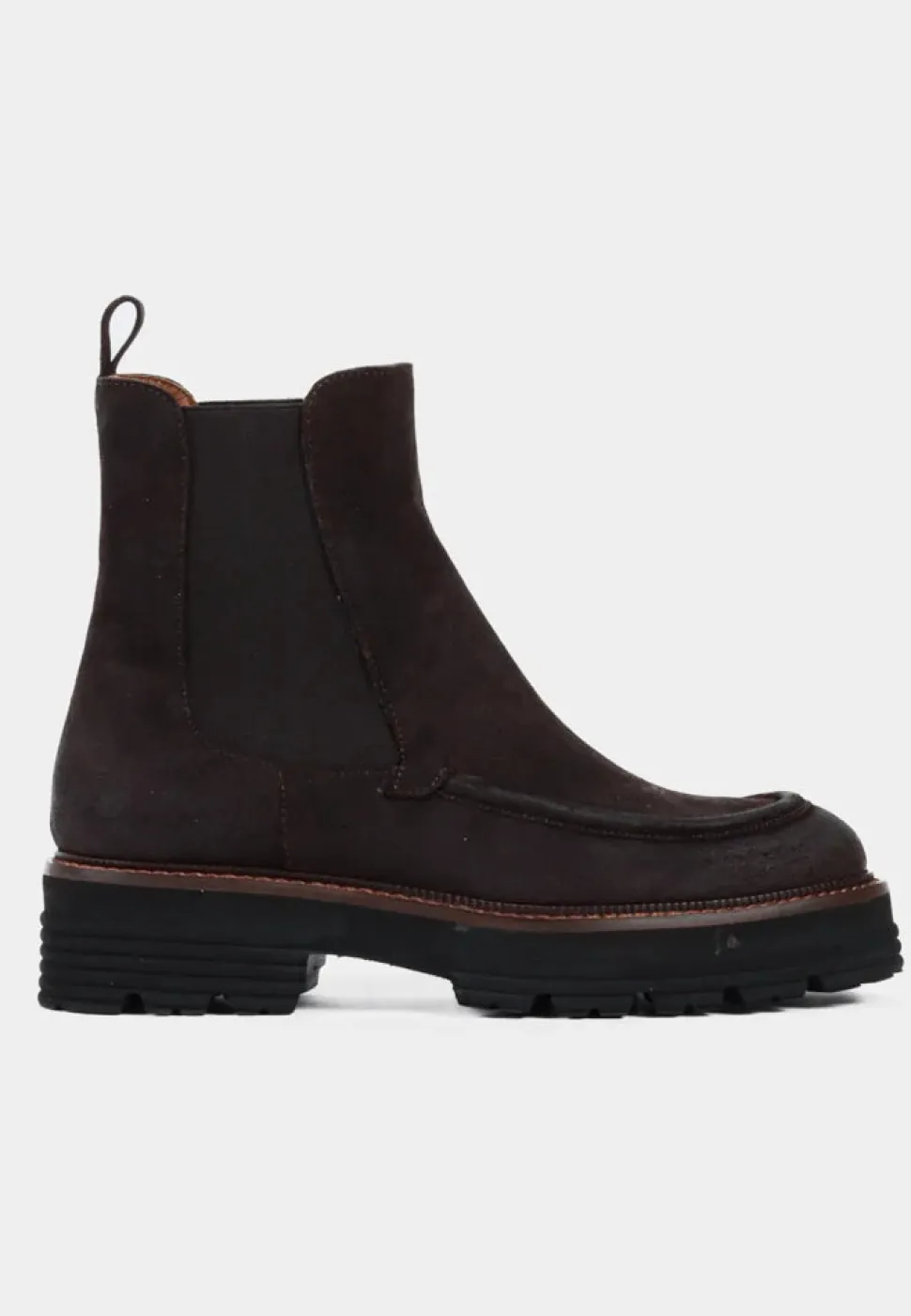 Bukela Riva Mocca – Chelsea-tyylinen nilkkuri tummanruskealla nahkapäällisellä. Pyöreä kärki, elastiset venykkeet sivuilla ja vetosilmukka helpottavat pukemista. Ulkopohja on kuvioitua kevyt EVA-materiaalia, joka vaimentaa iskut. Malli on kevyt mutta tukeva, siisti ja ajaton; sopii arkeen ja kaupunkikäyttöön. Valmistettu Italiassa, yhdistyy helposti farkkujen, mekkojen ja hameiden kanssa. Korkealaatuinen nahka ikääntyy kauniisti ja tarjoaa kestävyyttä.