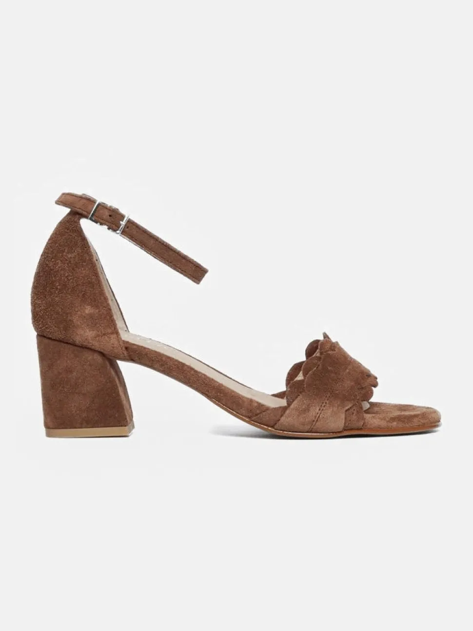 Naisten tyylikkäät mokkanahkaiset korkosandaalit ovat monikäyttöiset ja helposti yhdisteltävissä erilaisiin asukoikonaisuuksiin. Säädettävä nilkkaremmi. Korko n. 6cm