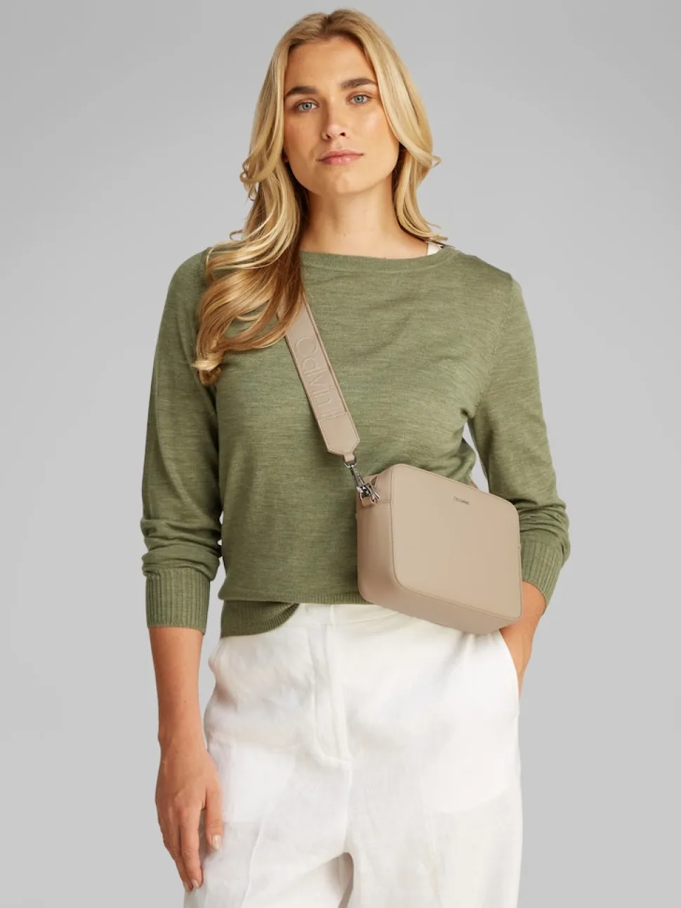• Calvin Klein metallilogo edessä