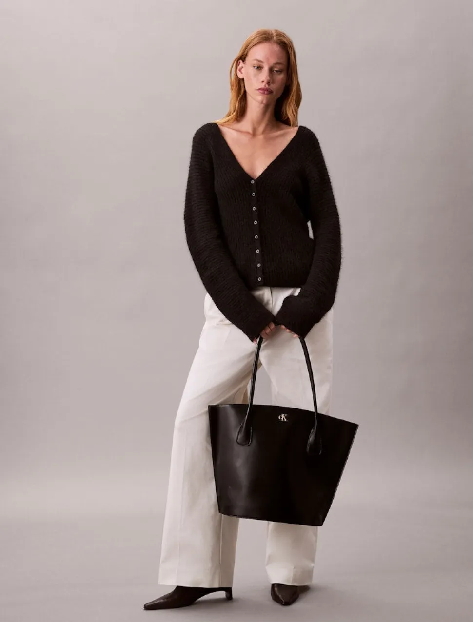 Suuri käsilaukku Calvin Klein -mallistosta. Tämä vetoketjullinen malli on valmistettu ekonahasta.
