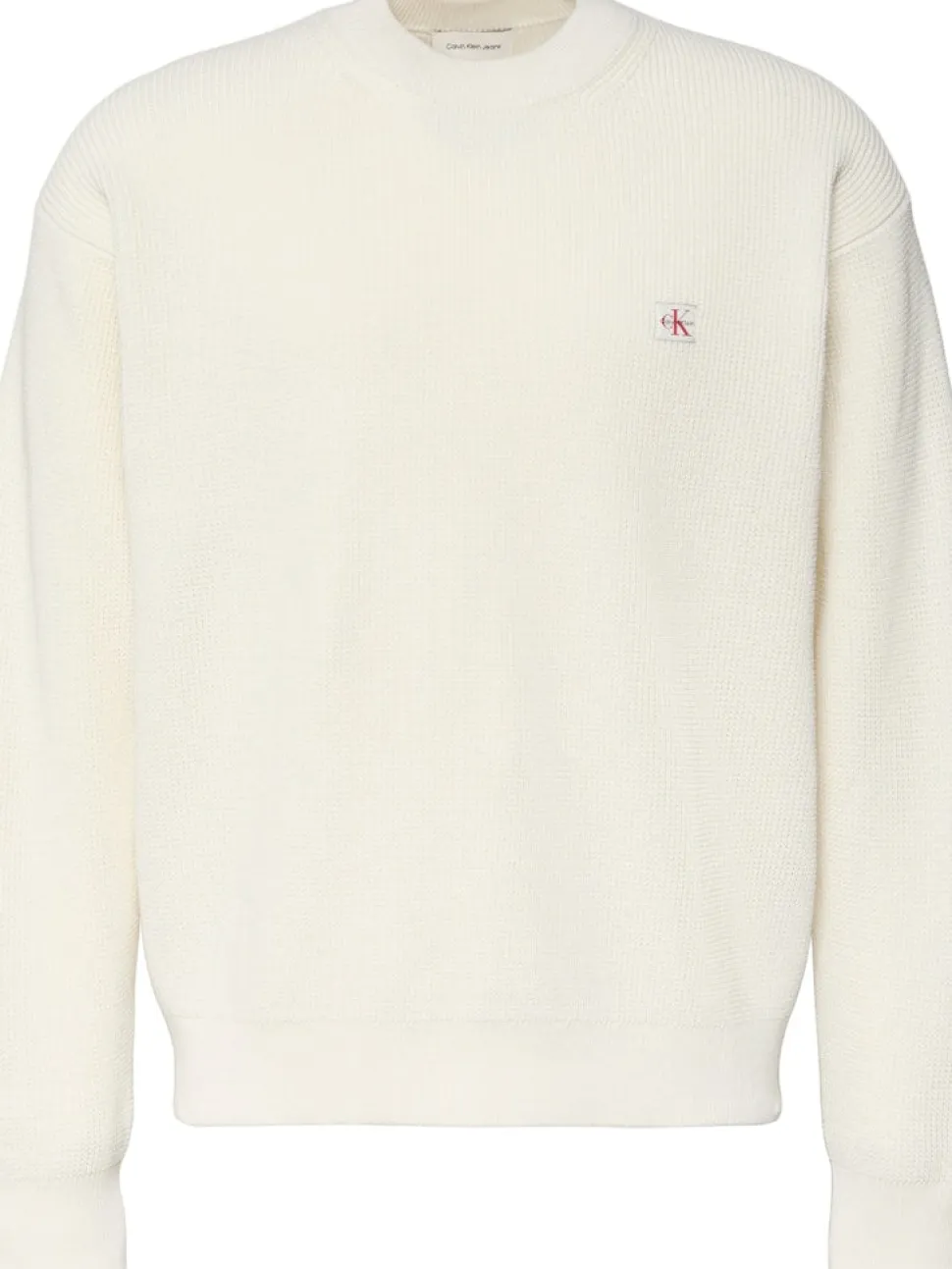 Calvin Klein Jeansin miesten neulepuserossa on mukavasti istuva rento malli. Neuleessa on pyöreä pääntie ja pitkät hihat, joissa pääntiellä, hihansuissa sekä helmassa joustavaa ribbineulosta. Puuvillaiselle neulosmateriaalille kiinnostavan ilmeen tekee vohvelimainen struktuuripinta. Tunnistettavan tyylin viimeistelee logo rinnassa.
