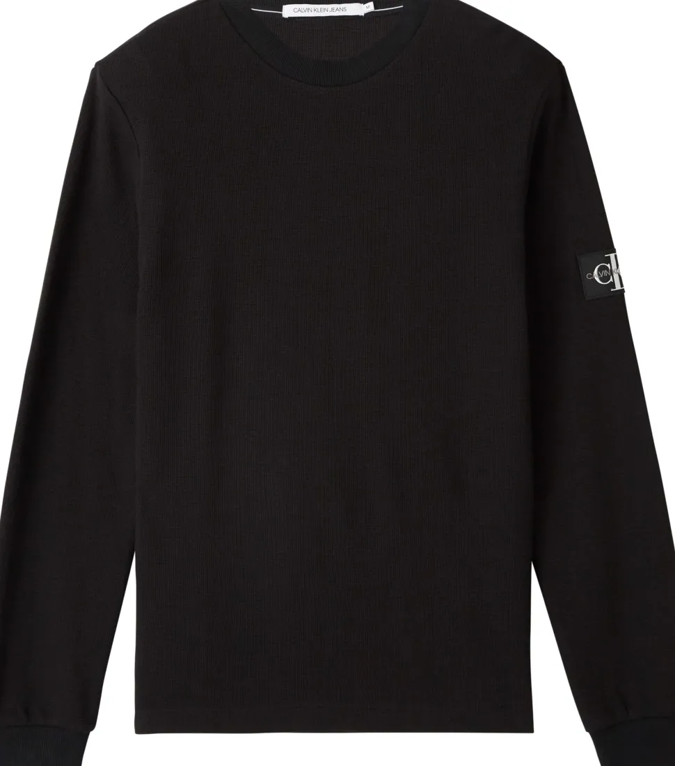 Miesten pitkähihainen t-paita pehmeää kohopintaista neulosta. Pääntiellä ja hihansuissa ribbineulosta.