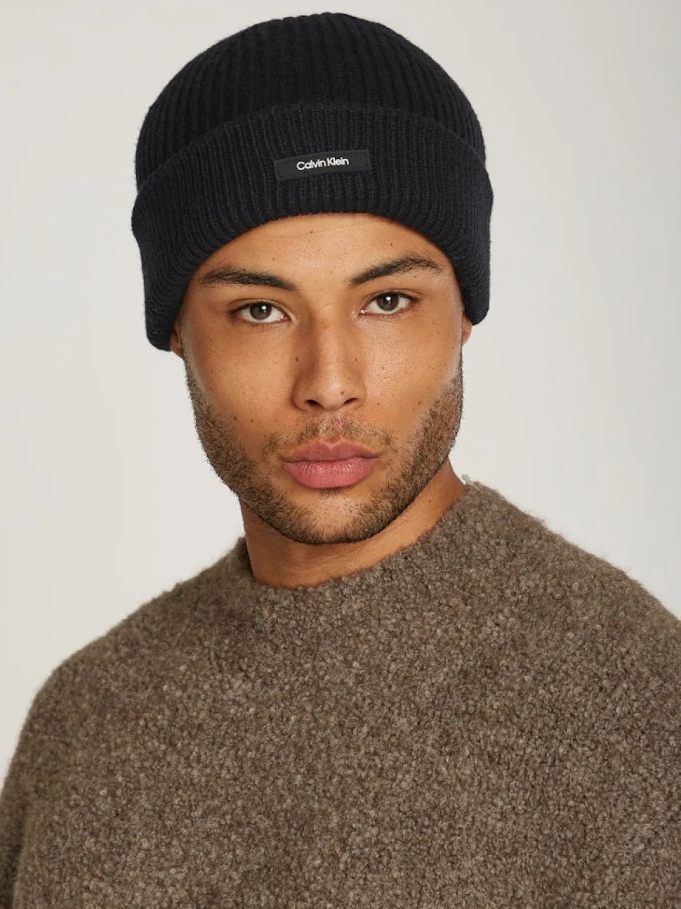 Paksu pipo joustavaa ribbineulosta. Käännettävä reuna. Edessä tyylikäs kuminen logomerkki käänteessä.