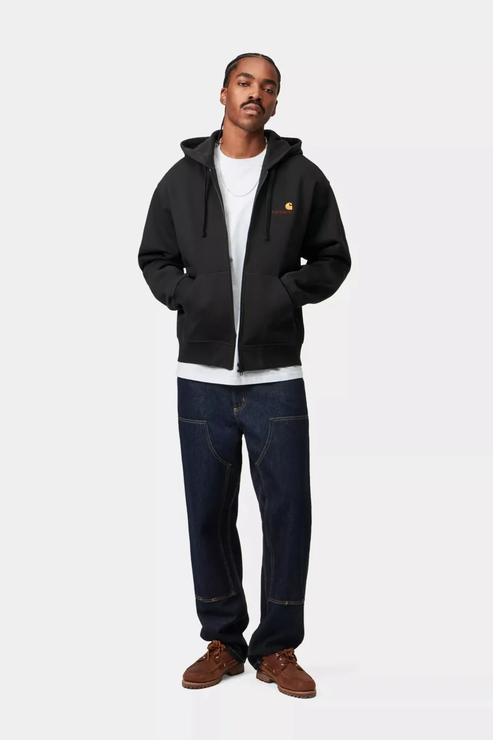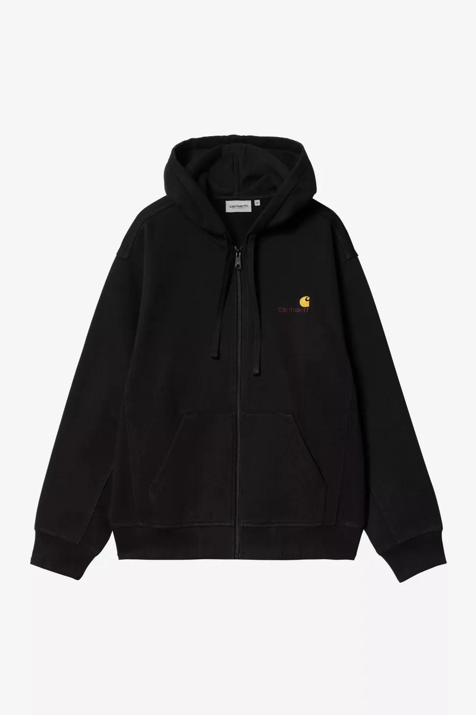Carhartt WIP Hooded American Script Jacket on klassinen ja monikäyttöinen huppari, jossa yhdistyvät Carharttin perinteinen laatu ja moderni katutyylin estetiikka. Takissa on säätömahdollisuuksilla varustettu huppu, vetoketju edessä ja pehmeä fleece‑vuori, joka tarjoaa lämmintä mukavuutta viileämpiin päiviin. Hillitty American Script -logo edustaa brändin autenttisuutta ja huoliteltua muotoilua. Tämä huppari on suunniteltu kestämään käyttöä — sen joustavat resorit hihansuissa ja helmassa varmistavat hyvän istuvuuden ja liikkuvuuden. Musta sävy tekee siitä helposti yhdisteltävän farkuista chinoihin tai kerrospukeutumiseen takin alla.