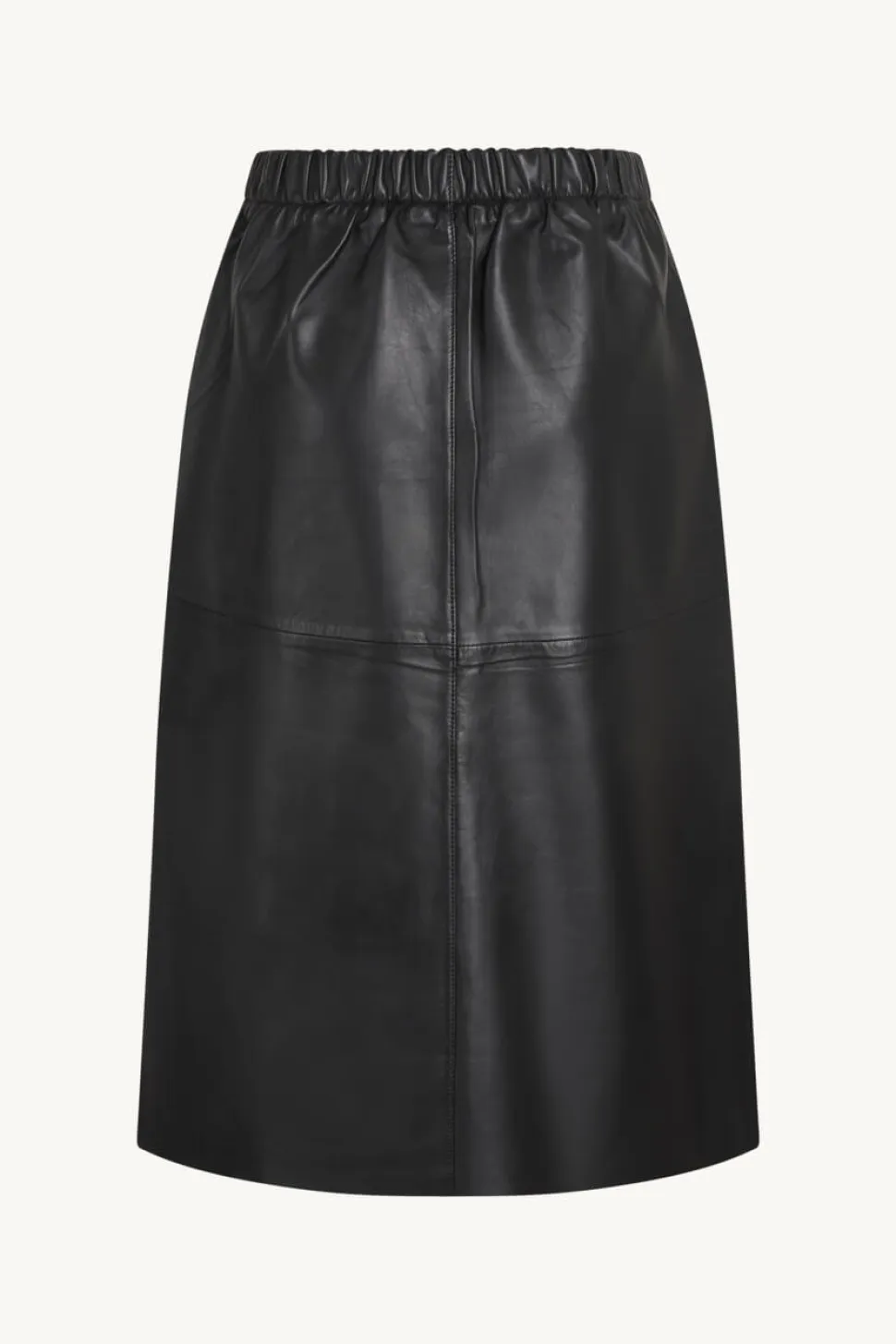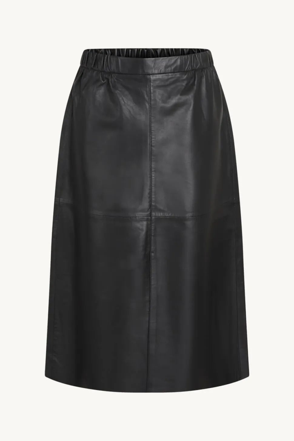 Clairen elegantti nahkahame, jossa on etuhalkio ja joustava vyötärö. Hameessa on sivutaskut ja se on vuorattu ylhäältä.