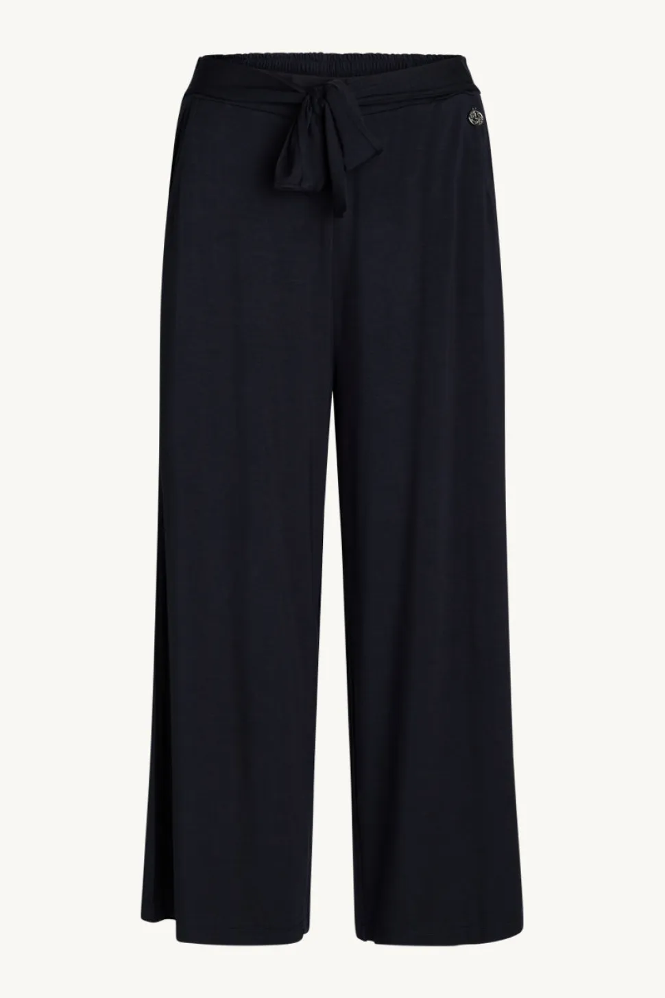 Pehmeää viskoosia ja taskut edessä. Joustava kiristysnyöri vyötäröllä.
