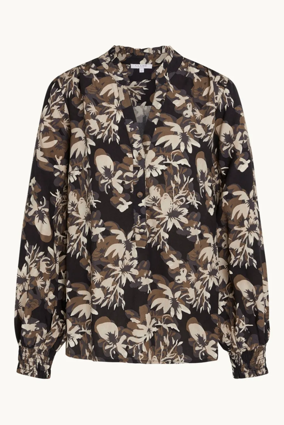 Clairen kaunis pusero lehtikuosissa. Ihanat pussihihat ja rypytetty kaulus.
