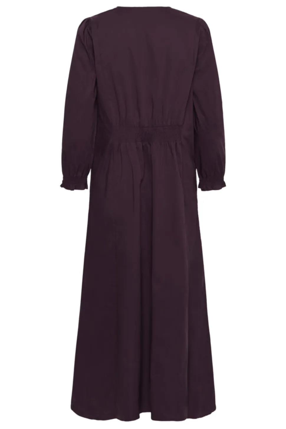 Rento midimekko, jossa on imarteleva rypytetty vyötärö, pyöreä V-pääntie ja kolmeneljäsosahihat. Sen laskeutuva siluetti ja mukava puuvillainen kangas takaavat vaivattoman tyylin erilaisiin tilaisuuksiin.