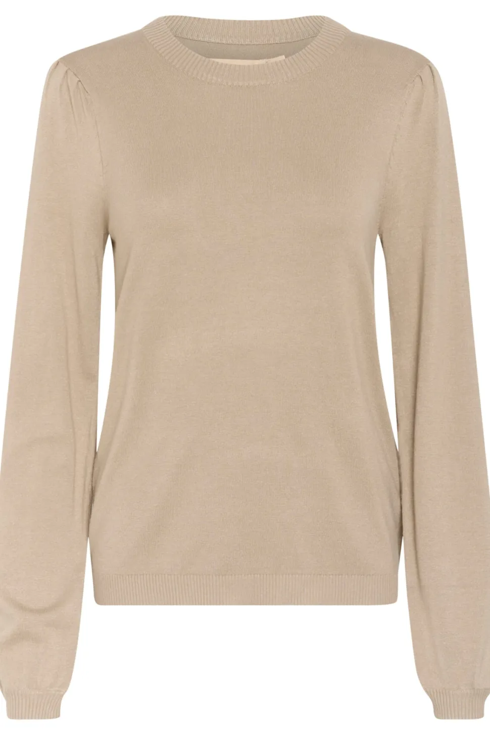 Naisten neule pitkillä hihoilla ja pyöreällä pääntiellä.