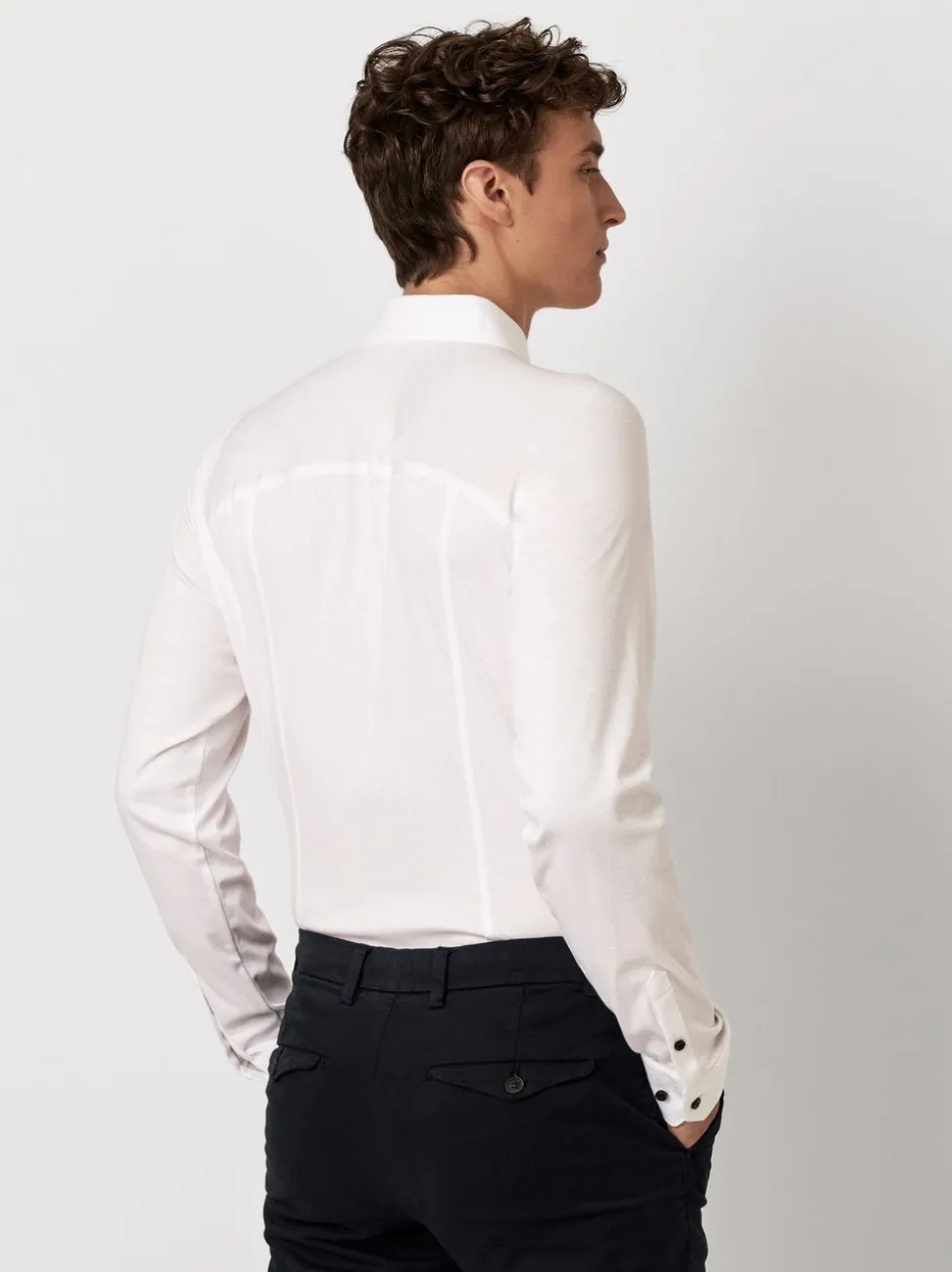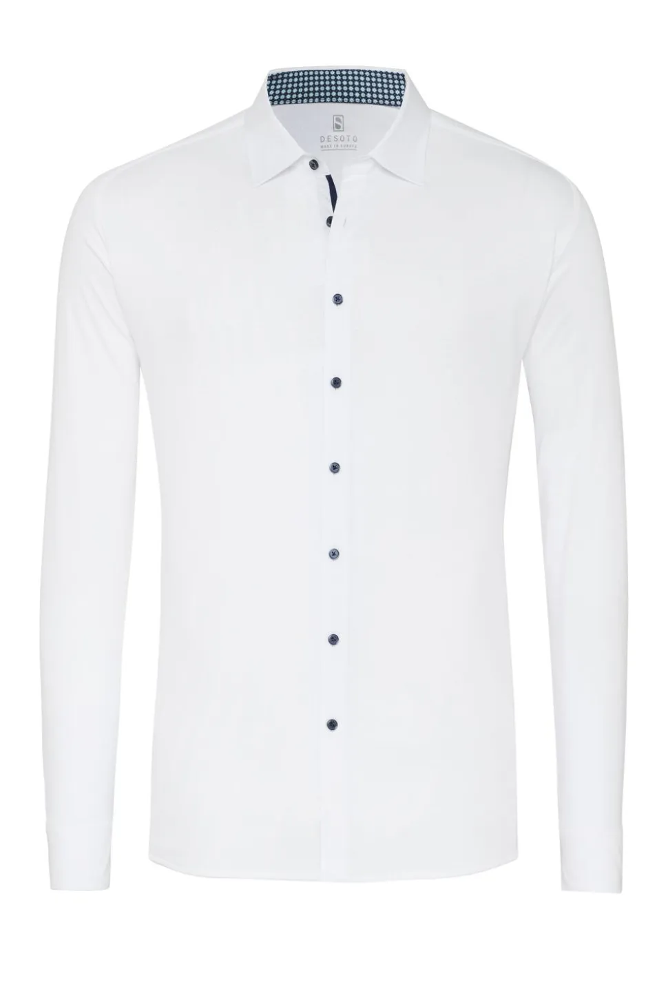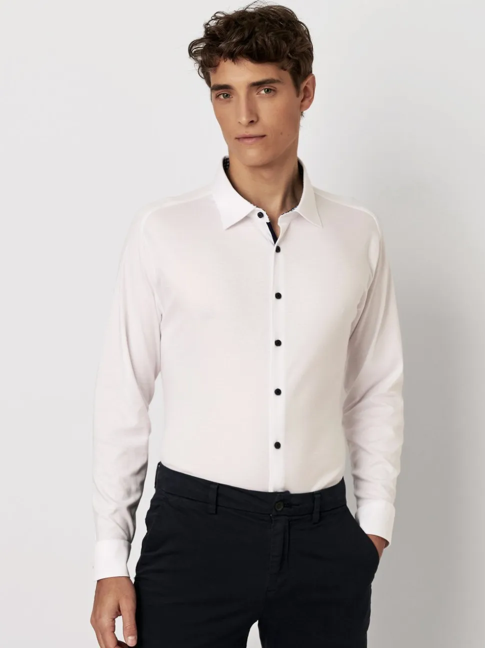 Kauluspaidan minimalistinen design ja puhdas valkoinen väri tekevät siitä monikäyttöisen vaihtoehdon niin toimistoon, vapaa-ajalle kuin juhlavampiinkin tilanteisiin. Non-iron-materiaali säästää aikaa ja takaa aina siistin ilmeen.