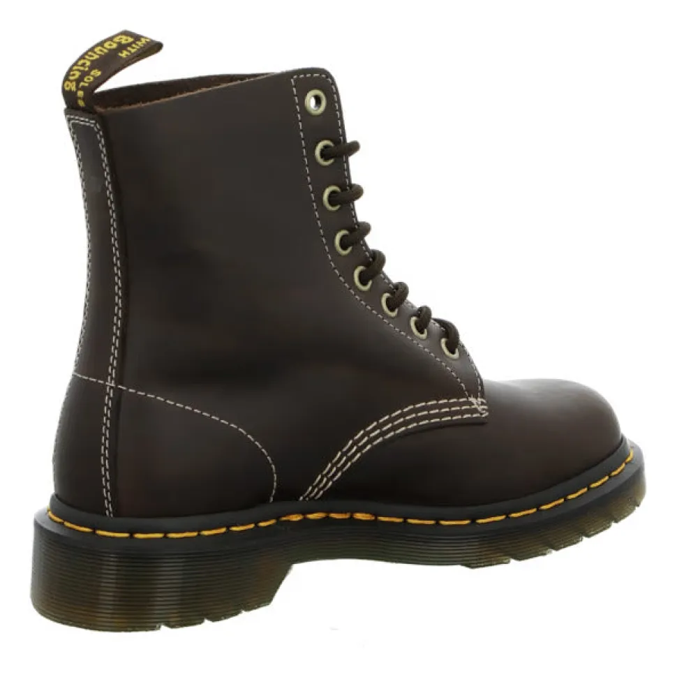 Legendaarinen Dr. Martens 1460 Pascal -nilkkuri yhdistää vintage-henkisen estetiikan ja huippulaatuisen toteutuksen. Sen vieritetty muotoilu huokuu ikonista ilmettä ja kestävä työjalkine estetiikkaa – nyt ruskeana versiona.