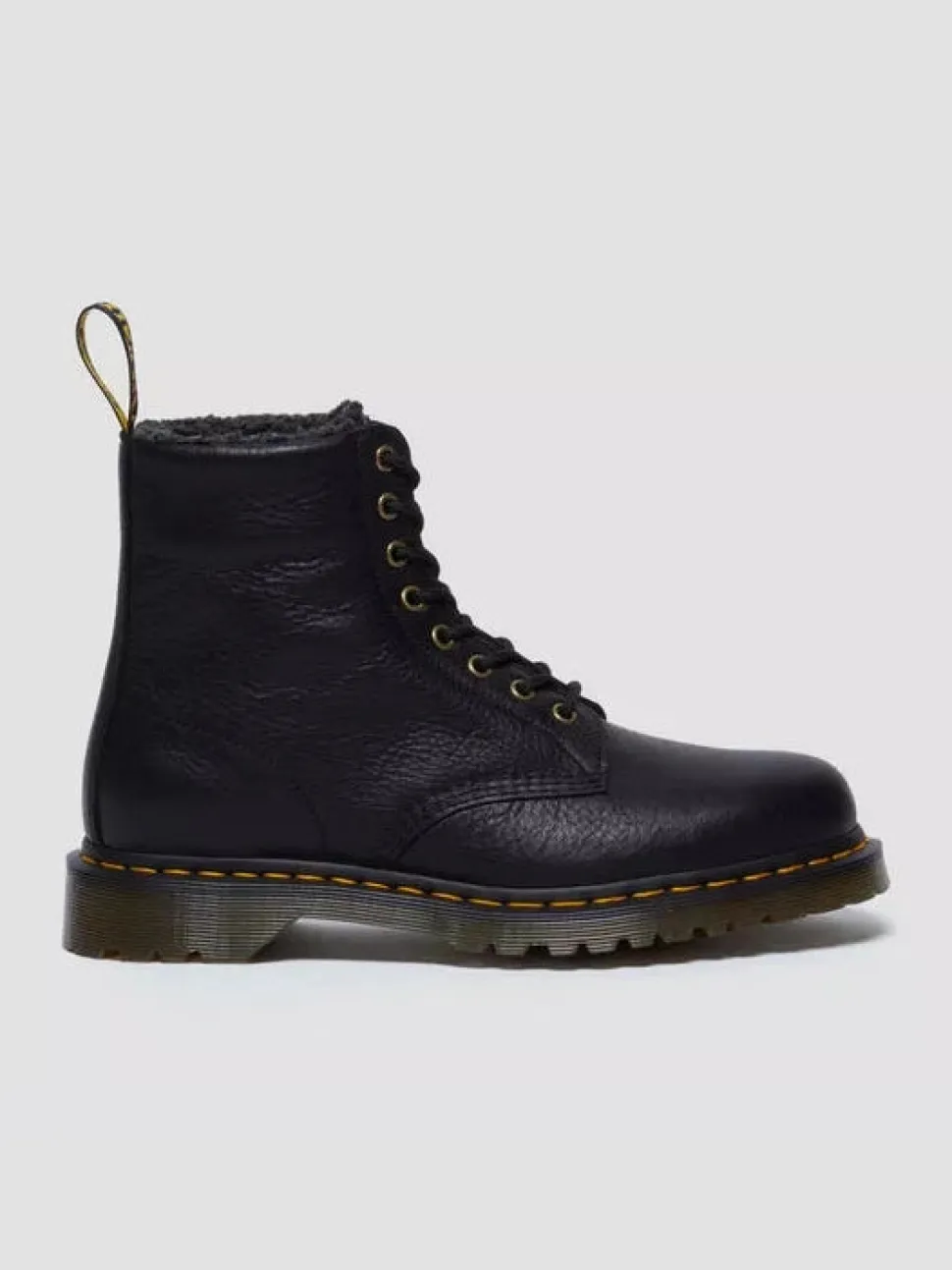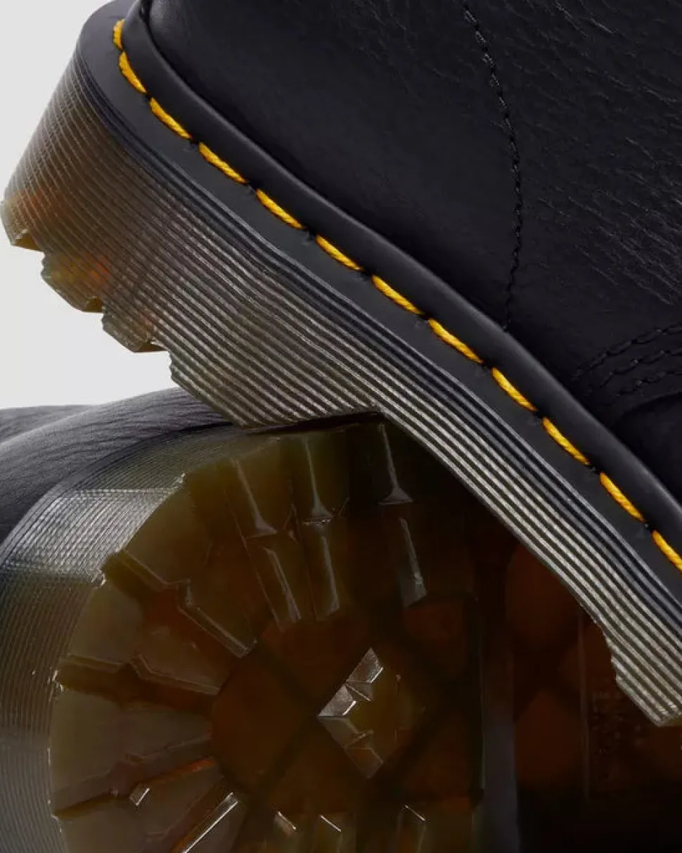 Kengät jotka ovat tehty käytettäväksi vuodesta toiseen. Tässä Grizzly-nahasta valmistetussa 1460 WL -maiharissa on luonnollinen pinta, joka vain paranee käytön myötä. Lujatekoisessa ja jykevässä mallissa on antiikkikullanväriset metalliosat, ja se on viimeistelty keltaisella pohjatikkauksella ja AirWair-kantalenkillä.