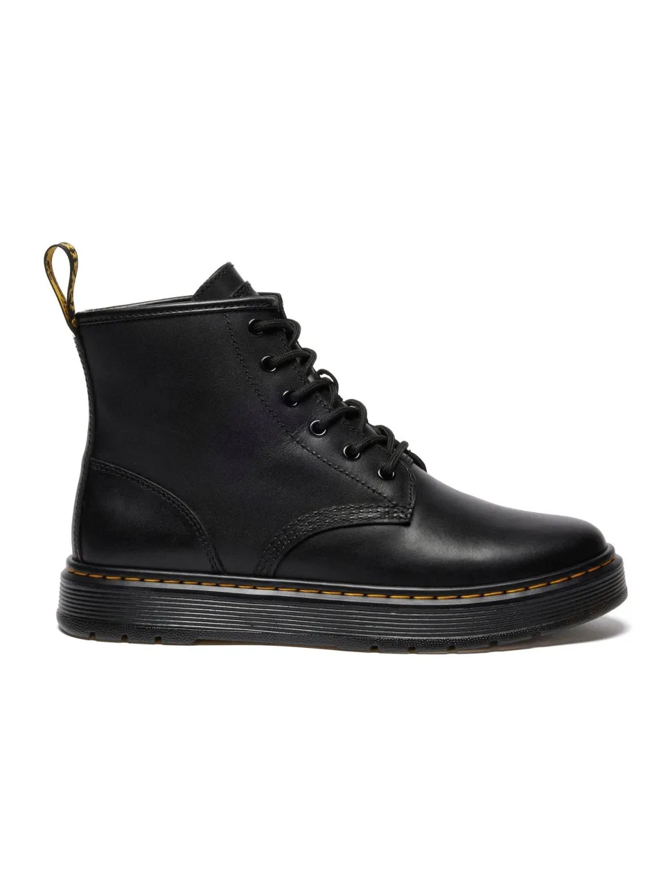 Suunniteltu liikkumaan. Brookline Chukka 6-reikäinen utility-saapas yhdistää rentoon muotoiluun tyypilliset Dr. Martensin piirteet. Se on valmistettu vahatusta, kevyesti teksturoidusta Lusso-nahasta, joka tuntuu mukavalta jo ensimmäisestä käyttöpäivästä lähtien. Vuori on yksivärisesti viimeistelty, mikä toistuu mustissa rei’issä ja päällisosan nauhoissa. Kokonaisuuden täydentävät tunnusomainen kantalenkki, keltaiset saumat ja Brookline-ilmatyynypohja.