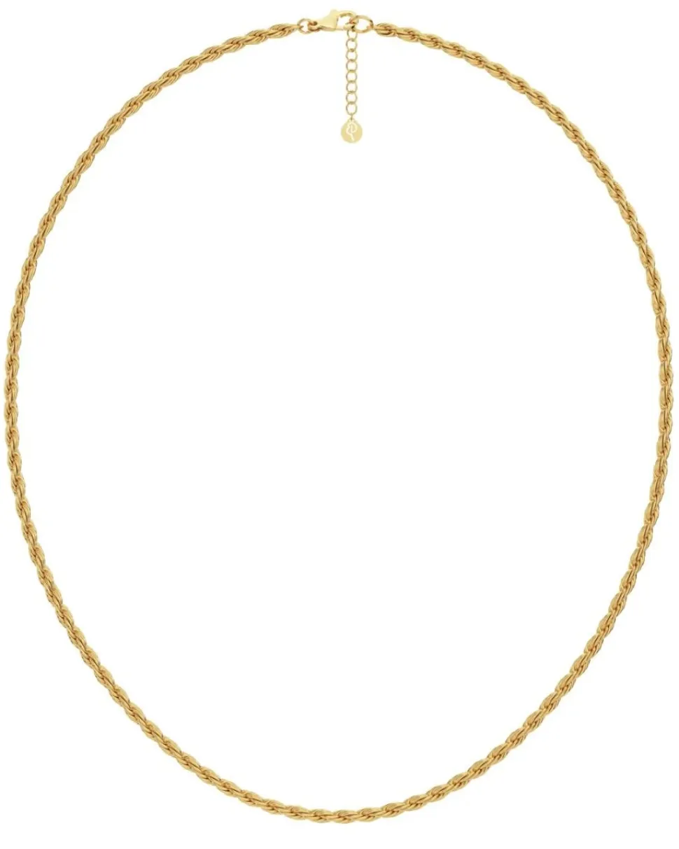 Edblad Rope Chain Necklace Gold on tyylikäs ja moderni kaulakoru, jossa on kiiltävä 3 mm leveä köysikuvioitu ketju ja säädettävä pituus 45–48 cm. Koru on valmistettu ruostumattomasta teräksestä ja päällystetty 14 k kultauksella, nikkeliturvallinen ja vedenkestävä.