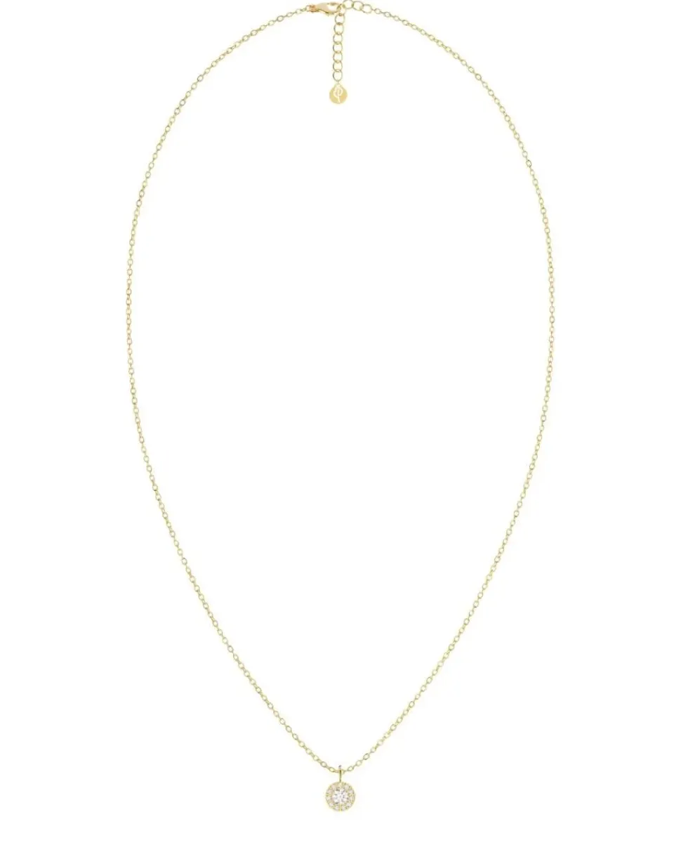Ruostumaton teräs kiiltävällä 14K kultauksella ja zirkonilla.