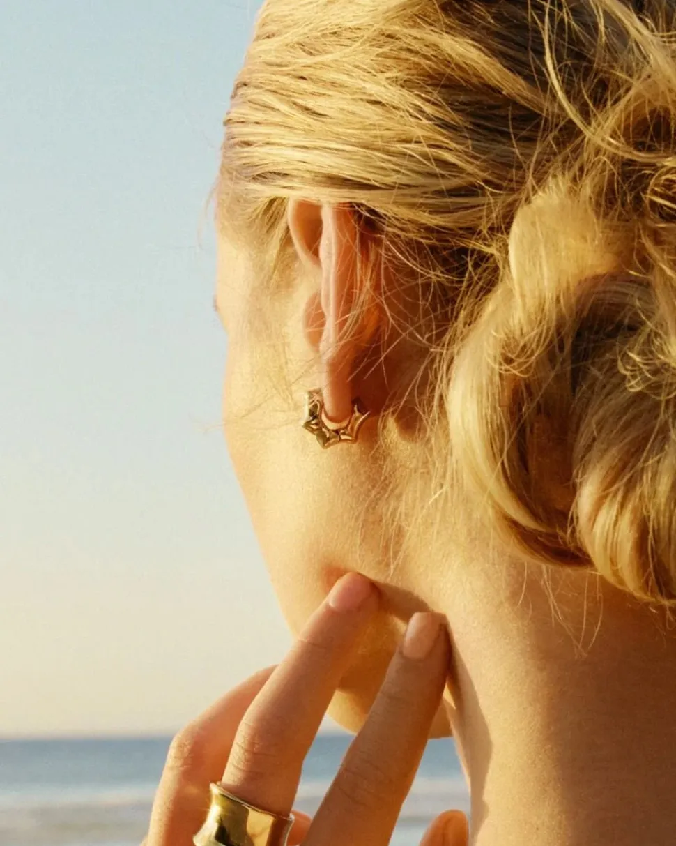 Bambukepin kuviossa rytmikkäästi toistuvat huiput ja laaksot ovat toimineet ilmaisuvoimaisen Cane-sarjan inspiraationa. Sarjan osat ovat pulleista muodoistaan huolimatta ihanan kevyitä. Pienemmät moniosaiset korvarenkaat ovat muodoltaan samanlaiset kuin sarjan suurikokoinen statement-rannerengas, ja ne sopivat täydellisesti käytettäväksi sen kanssa. Tässä 14 karaatin kultauksella.