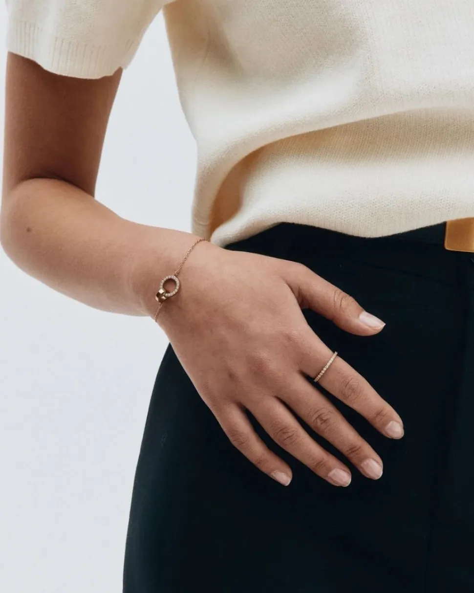 Edblad Glow Ring Mini Gold on elegantti ja minimalistinen sormus, jossa kiiltävä 14 k kultaus yhdistyy ruostumattomaan teräkseen ja koko kehän ympärille aseteltuihin kirkkaisiin kuutiollisiin zirkonioihin. Leveys on noin 1 mm ja korkeus 1,5 mm. Sormus on nikkeliturvallinen, vedenkestävä ja täydellinen yksinään käytettäväksi tai muiden sormusten kanssa puettavaksi.