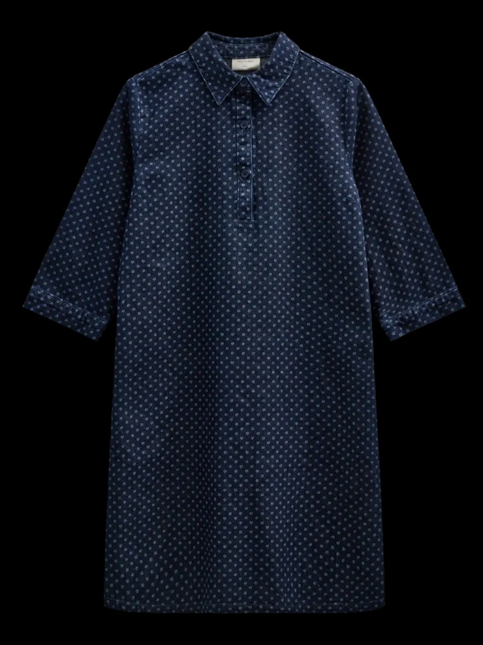 Tämä Freequent Rinna Dress on monipuolinen, tummansininen mekko, jossa yhdistyvät klassinen denim-vaikutelma ja moderni istuvuus. Mekossa on selkeä siluetti, kaunis kaulus sekä napitettava etuosa, jotka antavat ajattoman ilmeen, mutta samalla tekevät mekosta helpon pukea päälle sekä riisua. Selkeä leikkaus ja laskokset takana luovat pehmeän ja kauniisti laskeutuvan helman.