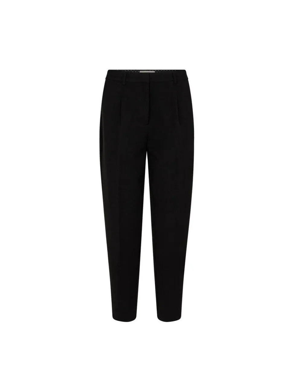 Freequentin housut ovat valmistettu pehmeästä ja kauniista materiaalista. Housuilla on regular -fit leikkaus, joka istuu rennosti. Lisäksi niissä on vetoketju ja hakaskiinnitys, sivutaskut, takataskun yksityiskohdat sekä prässätyt laskokset.
