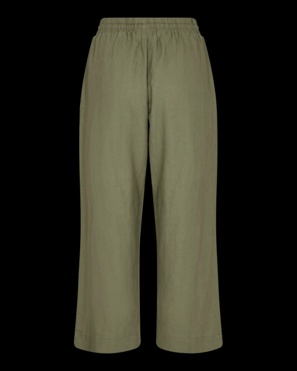 Freequentin La Pant housut ovat täydellinen valinta muodikkaaseen ja mukavaan pukeutumiseen. Näiden leveälahkeisten housujen hengittävä ja vilpoisa materiaali tekee niistä ihanteelliset niin arkipäivän menoihin kuin rentoihin tilaisuuksiin. Housuissa on 7/8 mittaiset lahkeet ja leveä joustava resori, jossa on kiristysnauha, mikä takaa täydellisen istuvuuden. Sivusaumataskut lisäävät käytännöllisyyttä, ja väljä malli tarjoaa liikkumavapautta ja mukavuutta koko päivän ajaksi.