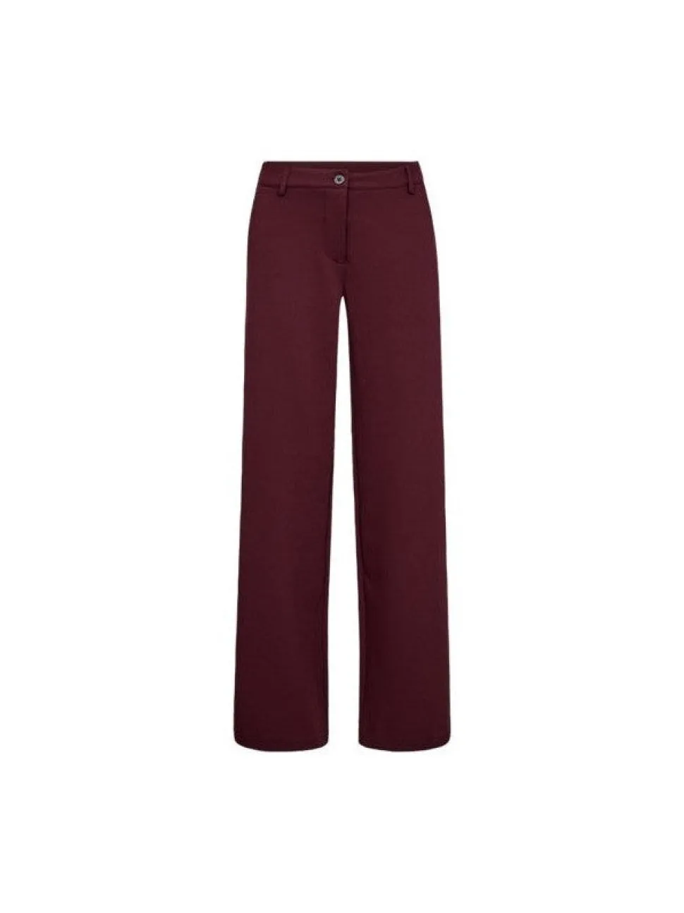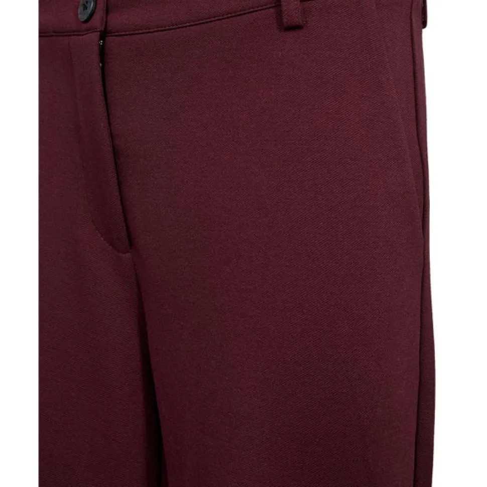 Naisten leveälahkeiset jerseyhousut. Housuissa on kiinnityksenä vetoketju ja nappi .