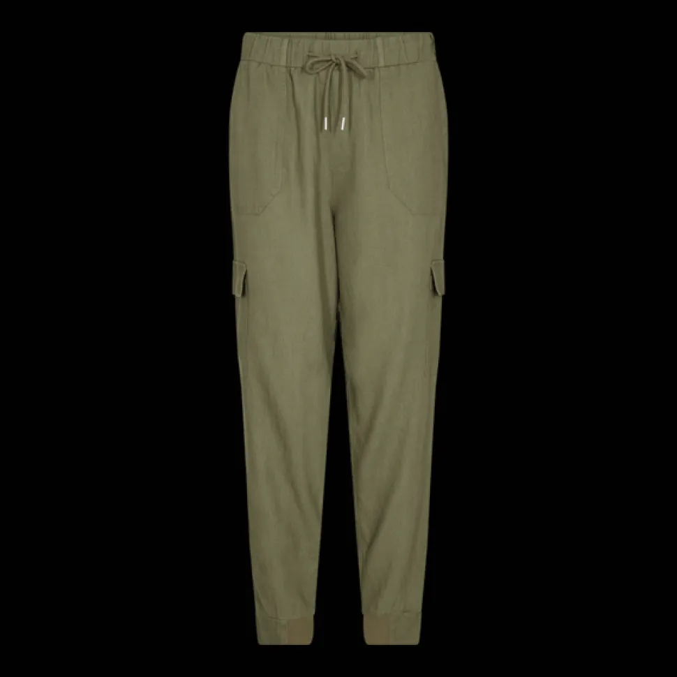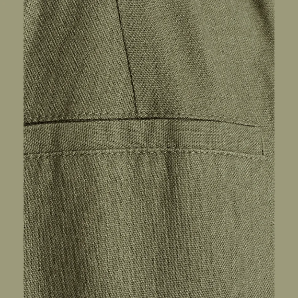 Valmistettu pehmeästä ja kevyestä pellavasekoitteesta. Housuissa on yksinkertainen siluetti, rento istuvuus, joustava vyötärönauha nyörillä sekä sivutaskut ja taskut lahkeissa.