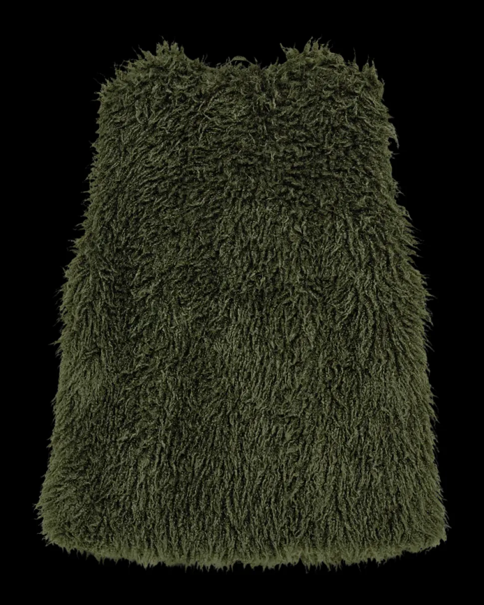 Freequent-liivi pehmeästä hapsukankaasta, jossa on vuori. Liivissä on yksinkertainen siluetti, syvä V-pääntie, piilotettu hakaskiinnitys edessä ja normaali istuvuus.