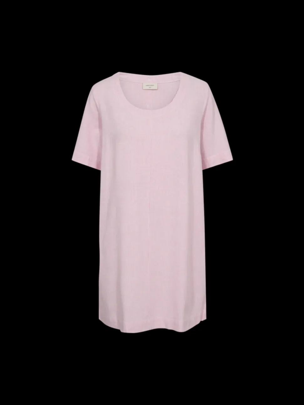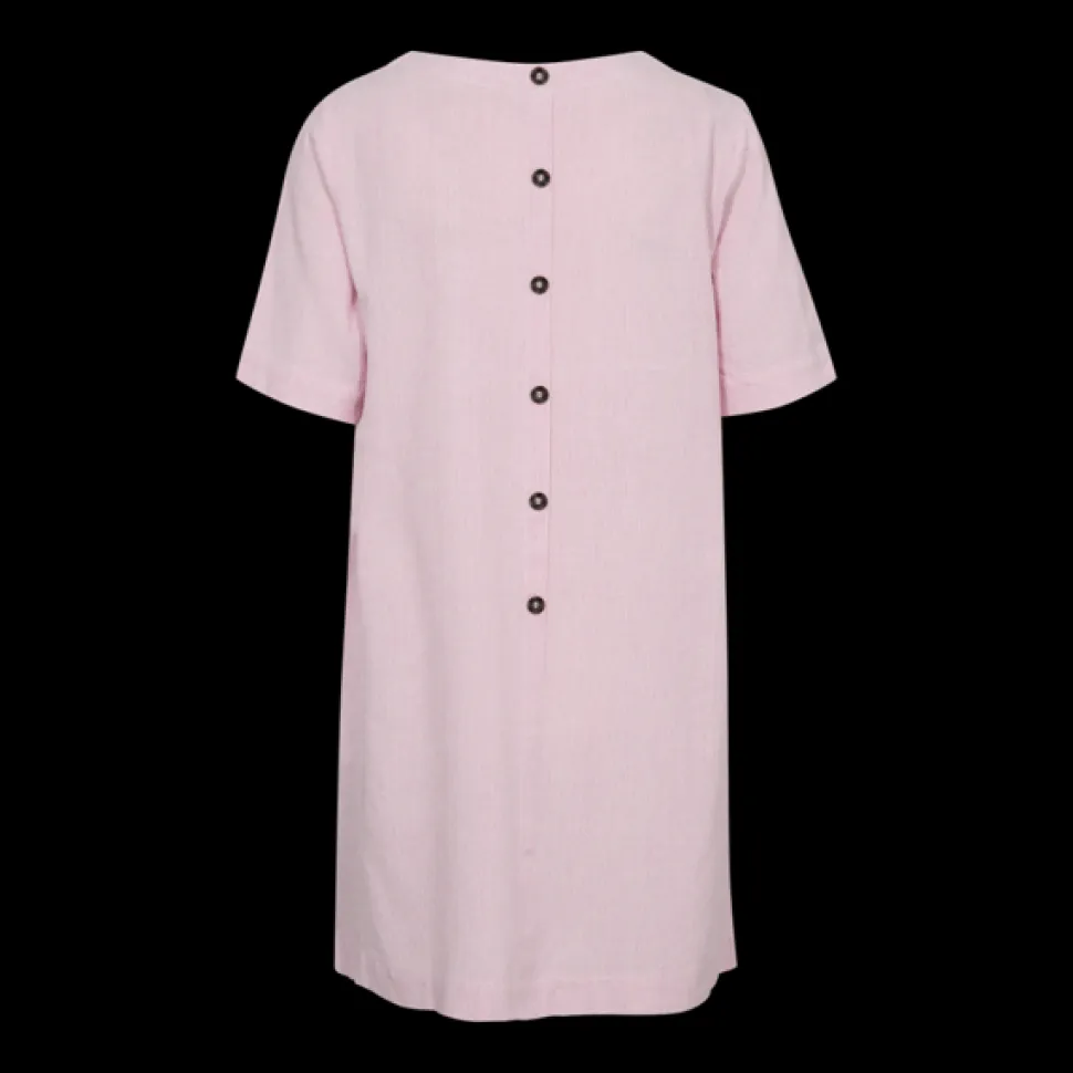 Freequent rento pellavamekko, jossa vaaleanpunainen ja valkoinen raidallinen printti.