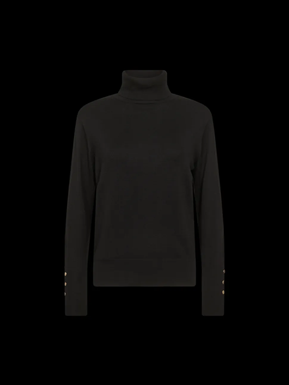 Naisten pehmeä korkeakauluksinen neule. Rento malli, jossa pitkät hihat koristenapeilla.