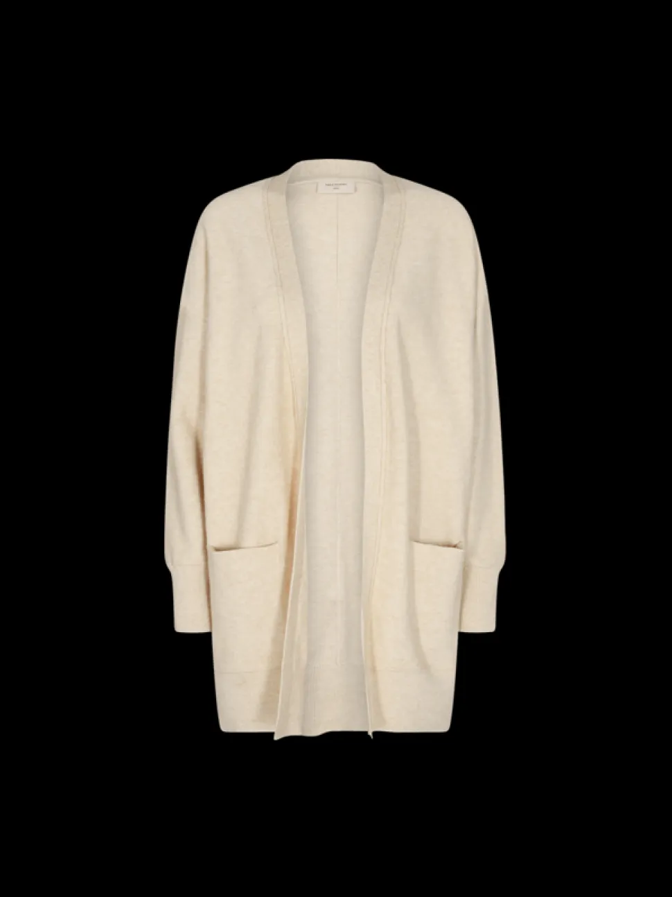 Freequentin pitkä, pehmeä neuletakki. Edestä avoin, ei kiinnityksiä. Avotaskut ja osittain päällepäin ommellut saumat. Leveät resorit hihoissa sekä helmassa. Koossa S pituus n.87 cm. Monikäyttöinen neule töihin ja vapaa-aikaan..