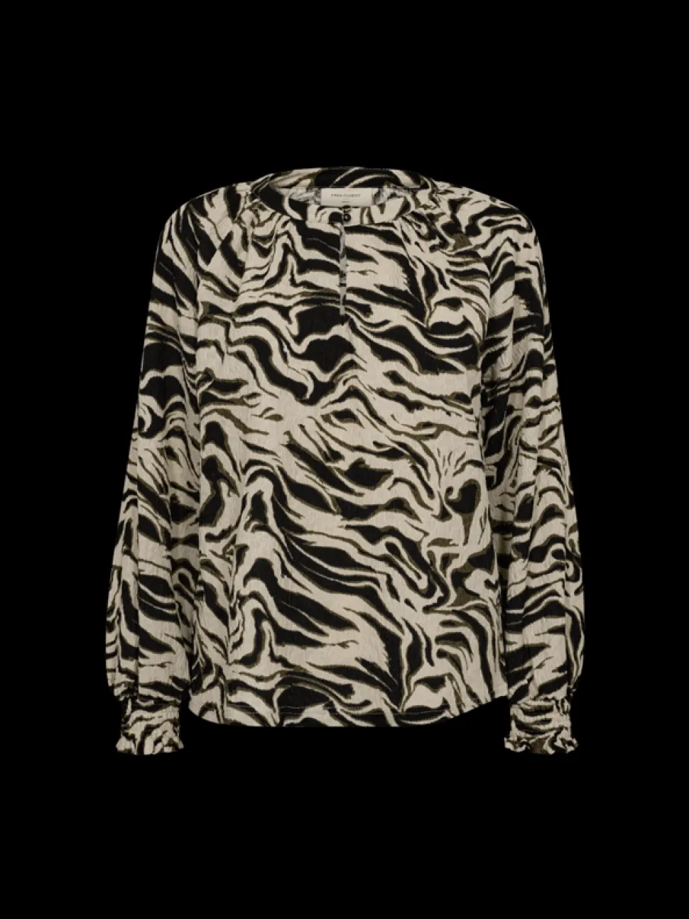 Freequentin monikäyttöinen kuosipusero helpossa ja miellyttävässä mallissa. Puserossa on hyvä hieman väljempi mitoitus, joustava materiaali, o-aukkoinen pääntie nappikiinnityksellä ja pitkät hihat.