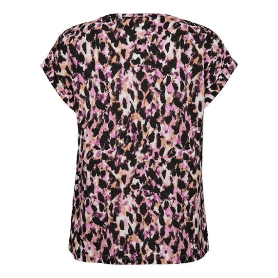 Tässä Freequentin lyhythihaisessa puserossa yhdistyy trendikäs design ja rento käyttömukavuus. Pusero on valmistettu pehmeästä ja hengittävästä materiaalista, ja sen rento leikkaus tekee siitä täydellisen arkeen tai vapaalle. Katseenvangitseva leopardihenkinen kuosi yhdistää mustaa, valkoista, pinkkiä ja hiekan sävyjä, luoden näyttävän mutta helposti yhdisteltävän ilmeen. V-kaula-aukko ja hihat ilman erillisiä saumoja viimeistelevät modernin siluetin.