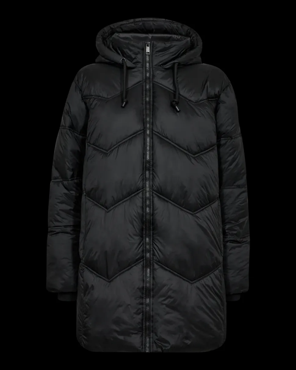Freequentin pehmeä ja tyylikäs toppatakki pitkillä resorillisilla hihoilla, sivutaskuilla, kiristysnauhallisella hupulla ja rennolla istuvuudella.