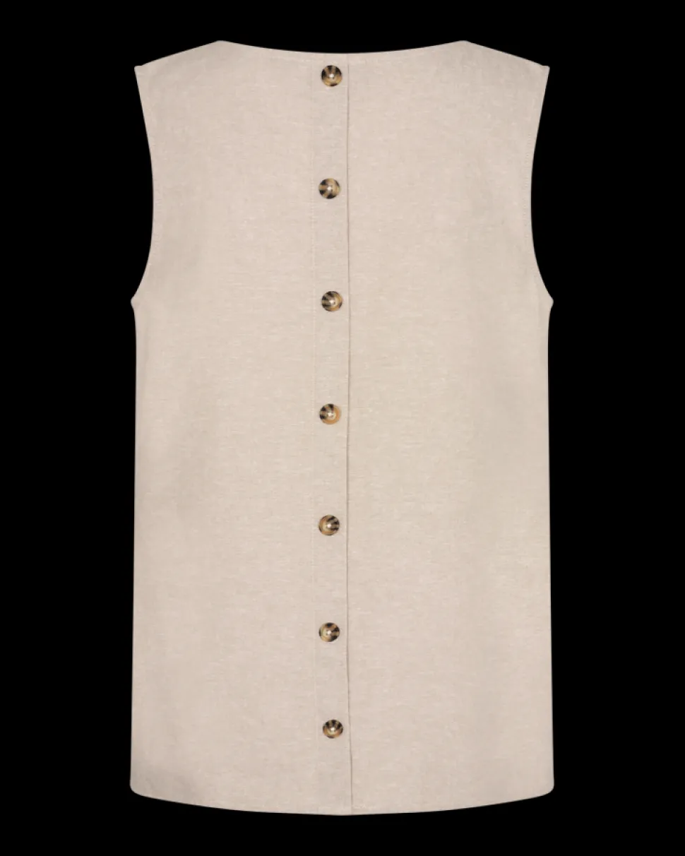 Naisten ihanan kevyt pellavainen toppi, jossa koristeena nappilista selässä. Toppi on hihaton ja siinä on pyöreä pääntie. Topissa on kaunis, väljästi laskeutuva malli. Monikäyttöinen toppi on helppo yhdistää asuun kuin asuun!