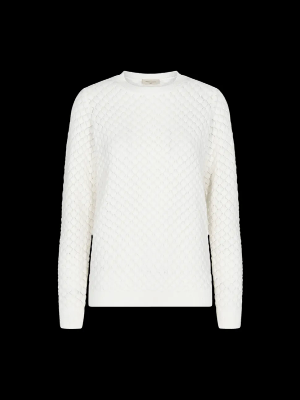 Pehmeä puuvillaneule pyöreällä pääntiellä. Neuleessa on pitkät hihat joidenka suissa on joustavat resorit.