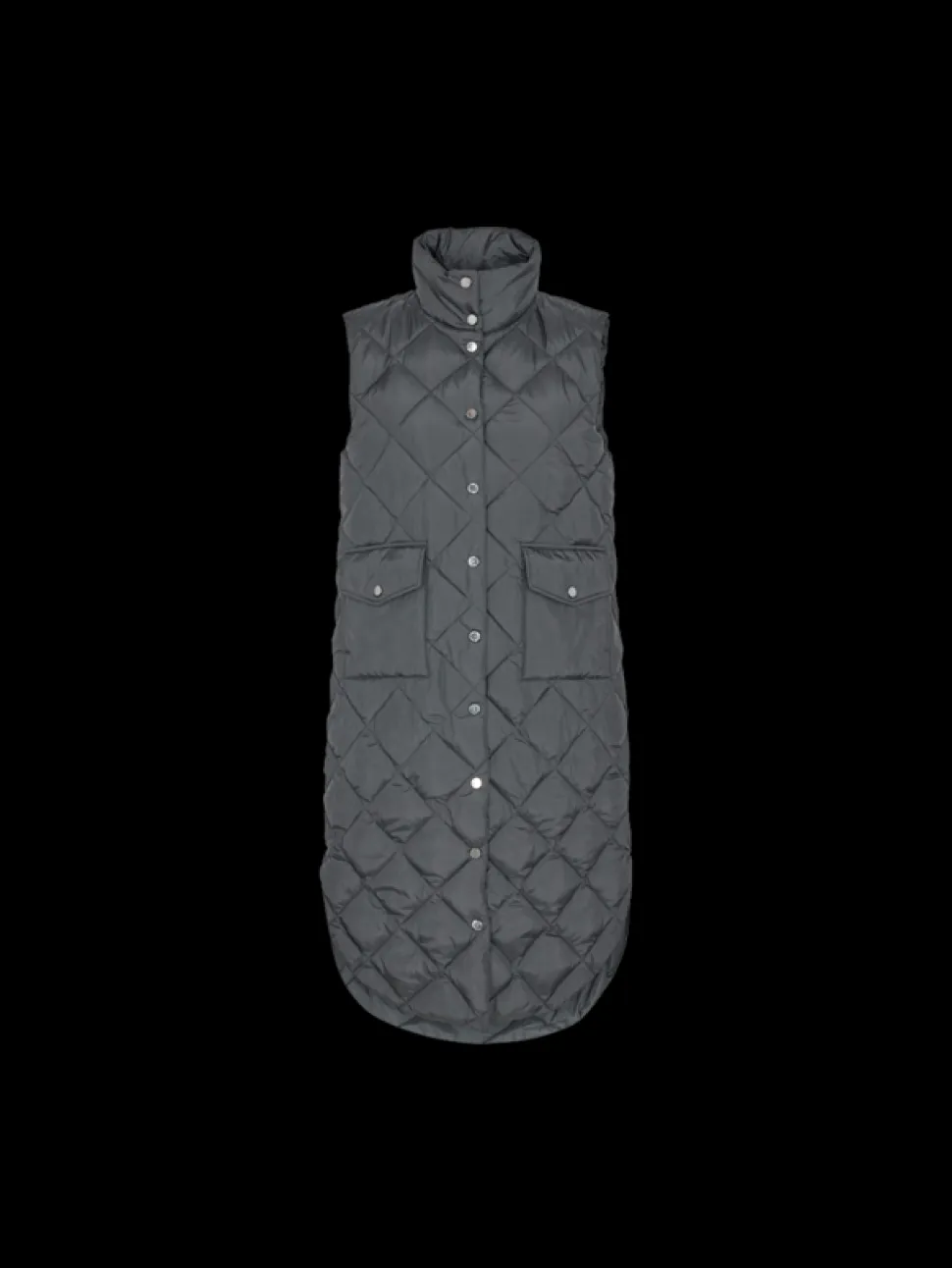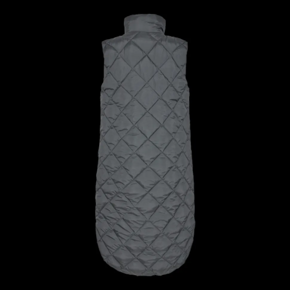 Freequentin tyylikäs, polvimittainen tikkiliivi. Edessä nappikiinnitus ja läpälliset taskut. Hihattomassa vanutäytteisessä liivissä on pyöristetty helma ja korotettu kaulus. Monikäyttöinen ja tyylikäs vaate, joka sopii asuun kuin asuun!
