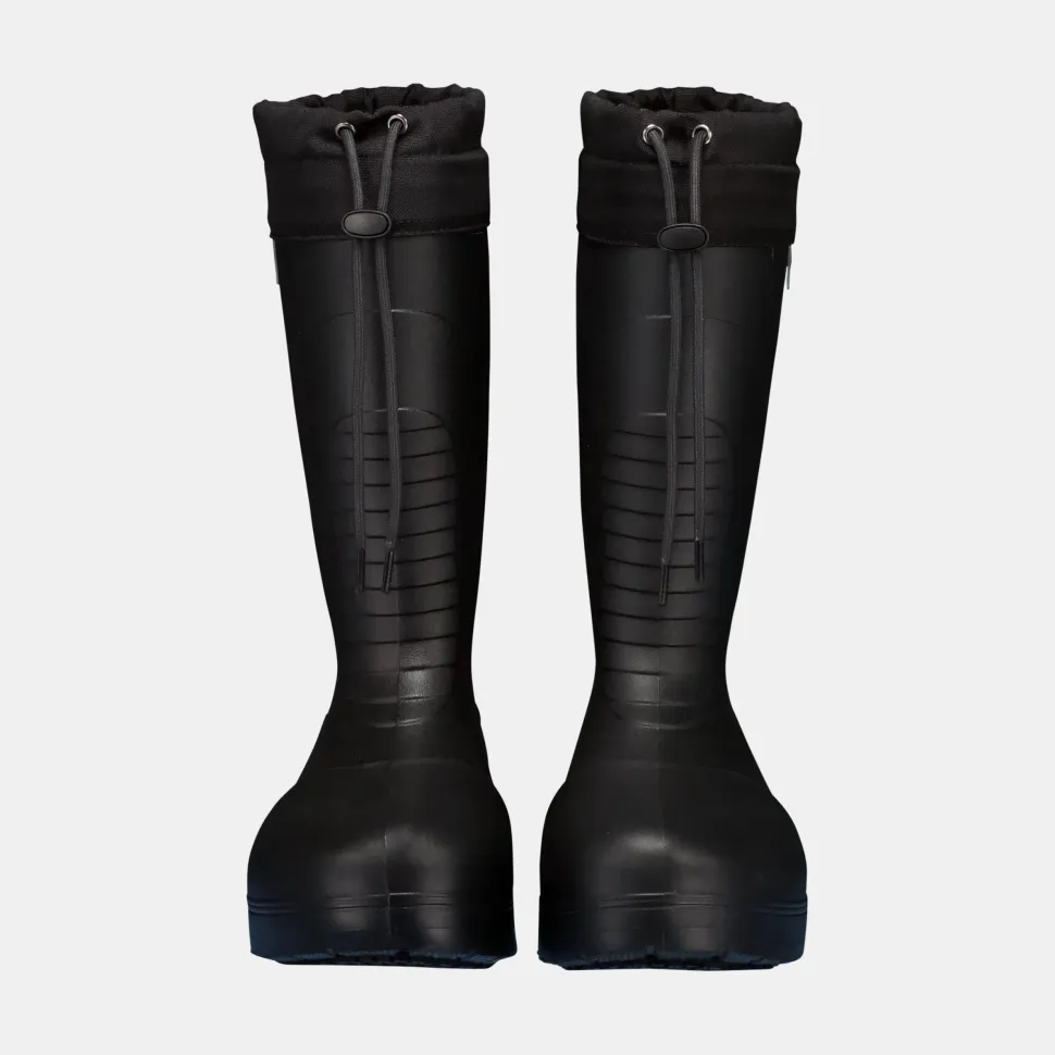 Päällinen (kuori): 100 % EVA Päällinen (kaulus): 100 % polyesteriä Pohja: 100 % synteettistä kumia Kärki: 100 % ABS-komposiittia Vuori: ~50 % villaa, ~50 % polyesteriä Pohjallinen: ~95 % akryyliä, ~5 % alumiinia