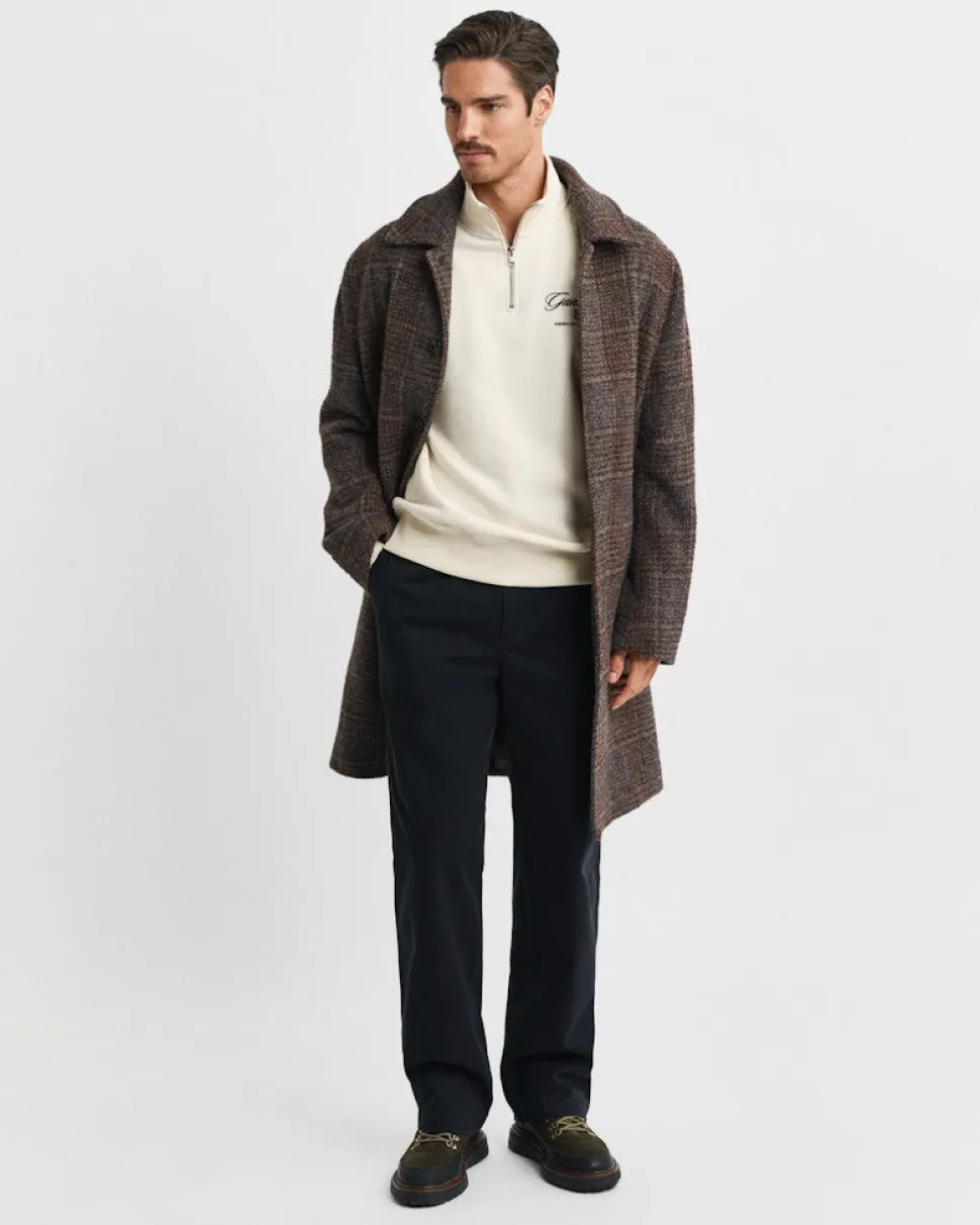 GANT Graphic Half‑Zip luonnonvalkoinen puolivetoketjullinen collegepaita pystykauluksella. Rentoon regular/relaxed-mitoitukseen leikattu malli, jossa lyhyt vetoketju, pitkät hihat ja tilava kengurutasku. Brändätty vetoketjun vedin sekä ribatut hihansuut ja helma. Rintaa koristaa kaudenmukainen GANT‑grafiikka/brodeeraus. Sopii arkeen ja kerrospukeutumiseen; helppohoitoinen ja kestävä valinta.