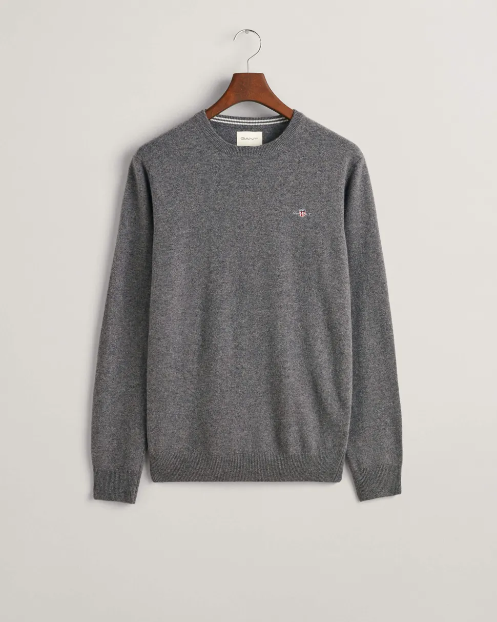 Regular fit -mitoitus Pyöreä pääntie Hihansuu- ja helmaresorit Rinnassa kirjailtu GANT-kuvio Tyylikäs neulepaita, pyöreä pääntie, täyspitkät hihat, Gant logomerkki rinnassa. Resorit pääntiellä, hihansuissa ja helmassa. Suora malli, laskeutuu lantiolle. Lämmin ja miellyttävä materiaali.